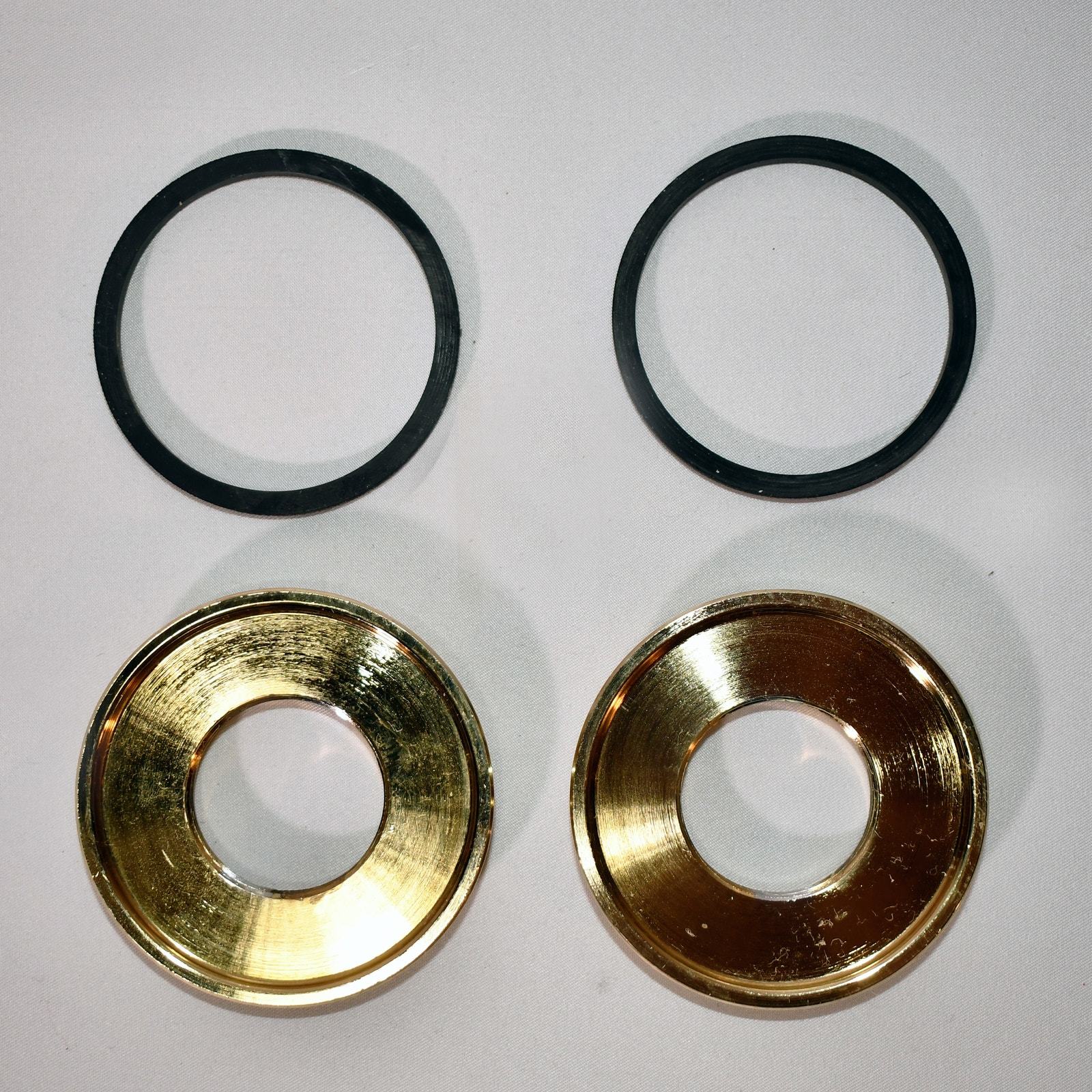 For sale is this lot of 2 Delta Faucet RP23094PB handle base with gaskets. These 2 bases have a polished brass finish and look great! See all the photos for the overall condition of this piece.