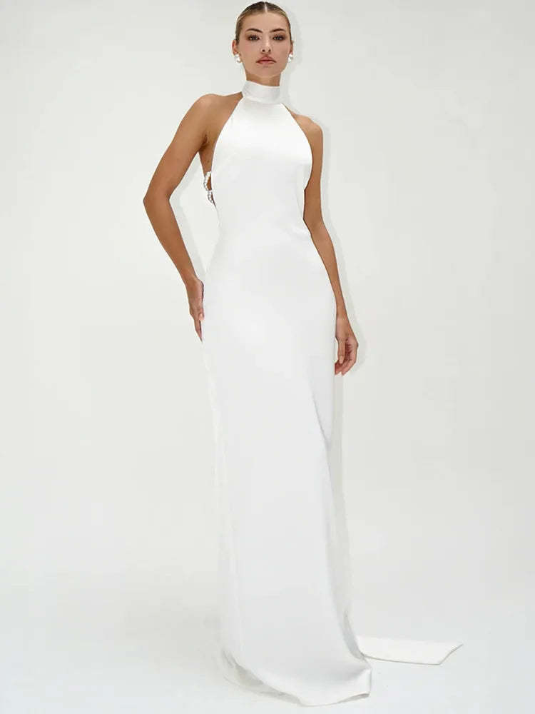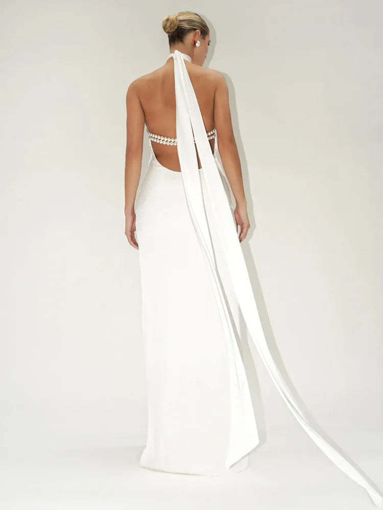 2024 Chic Sexy Backless Halter Pearl Black White Maxi Long Bodycon Dress