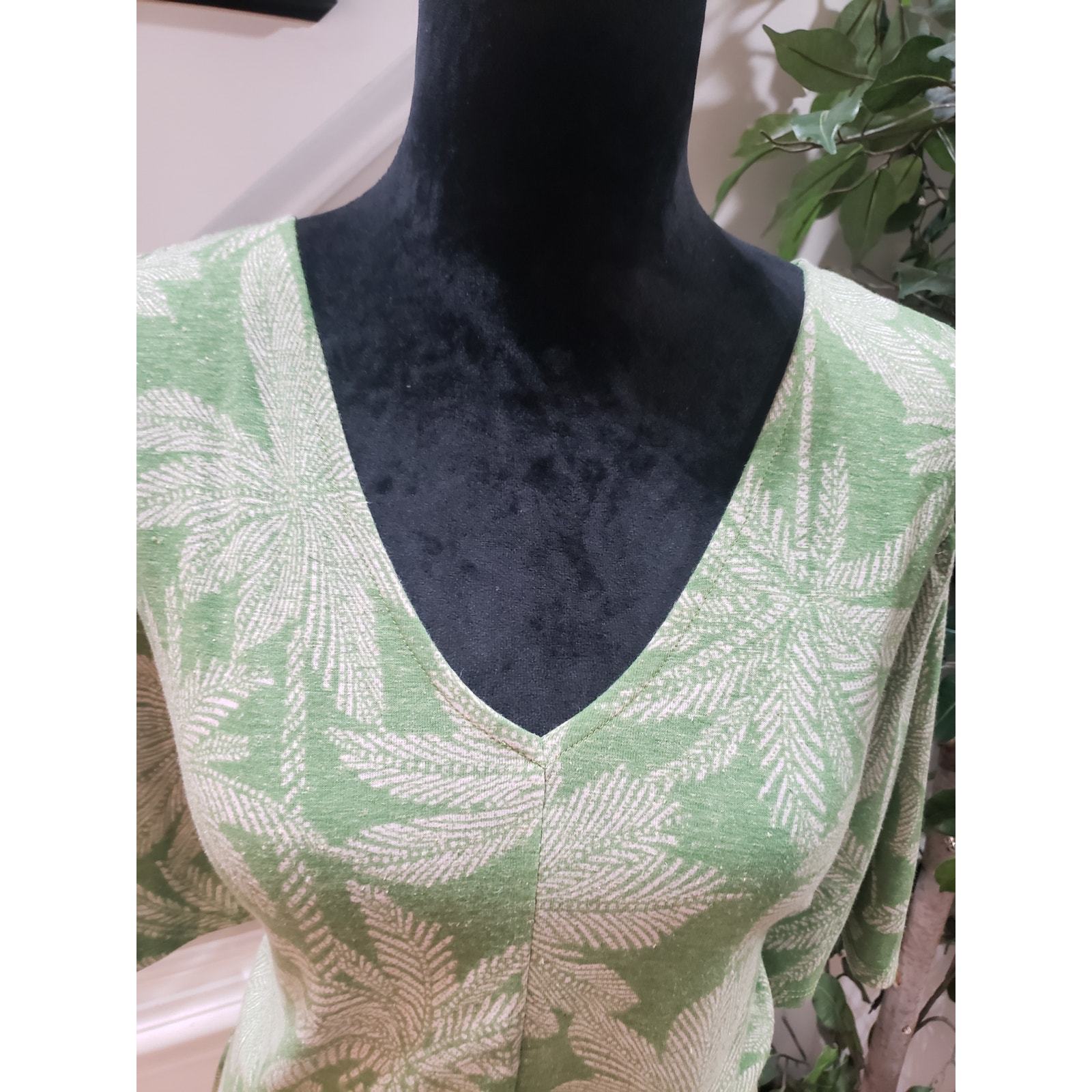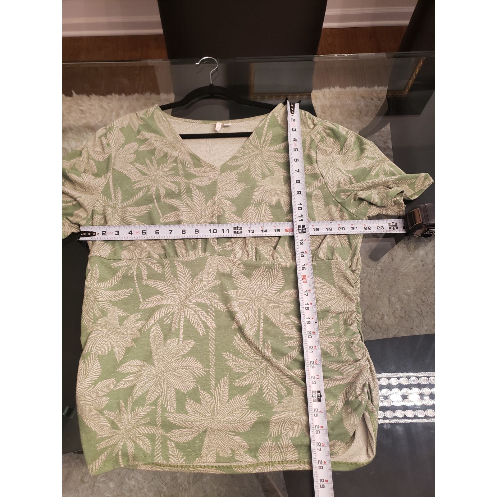 Cato Blouse Top Womens Size 18/20W Green Leaf Print Stretch Ruched V Neck