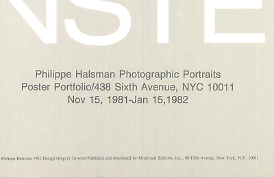 Sku: YY3648Artist: Philippe HalsmanTitle: EinsteinYear: 1981Signed: NoMedium: Offset LithographPaper Size: 25.5 x 18.5 inches ( 64.77 x 46.99 cm )Image Size: 16.5 x 13 inches ( 41.91 x 33.02 cm )Edition Size: UnknownFramed: NoCondition: A-: Near Mint, very light signs of handlingAdditional Details: This poster of Albert Einstein by Philippe Halsman, printed in 1981 and published by Poster Portfolio NYC, is a unique and valuable collectible. It captures the essence of one of the most important figures in modern history through the lens of one of the greatest portrait photographers. Don't miss the opportunity to add this exceptional piece of photographic and cultural history to your collection.