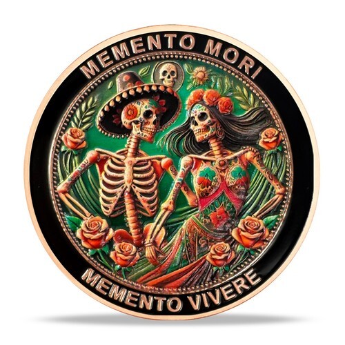 SPECIAL PRICING! Here is your chance to own a Black Ruthenium Skull Medallion. The .999 pure copper round accompanying this certificate of authenticity is entirely clad in BLACK RUTHENIUM with 24KT Gold Clad Highlights, by The Merrick Mint. The obverse features the Indian Skull design. The reverse includes the Heraldic Snakes of America. The coin is coated with Black Ruthenium, which is a type of platinum metal that looks like a dark platinum, but is 100 times Rarer. Ruthenium is a chemical element with the symbol RU Atomic # 44. It is a rare transition metal belonging to the platinum group of the periodic table. This Certificate of Authenticity guarantees that your coin is authentic, thereby assuring its Collector Edition Status.