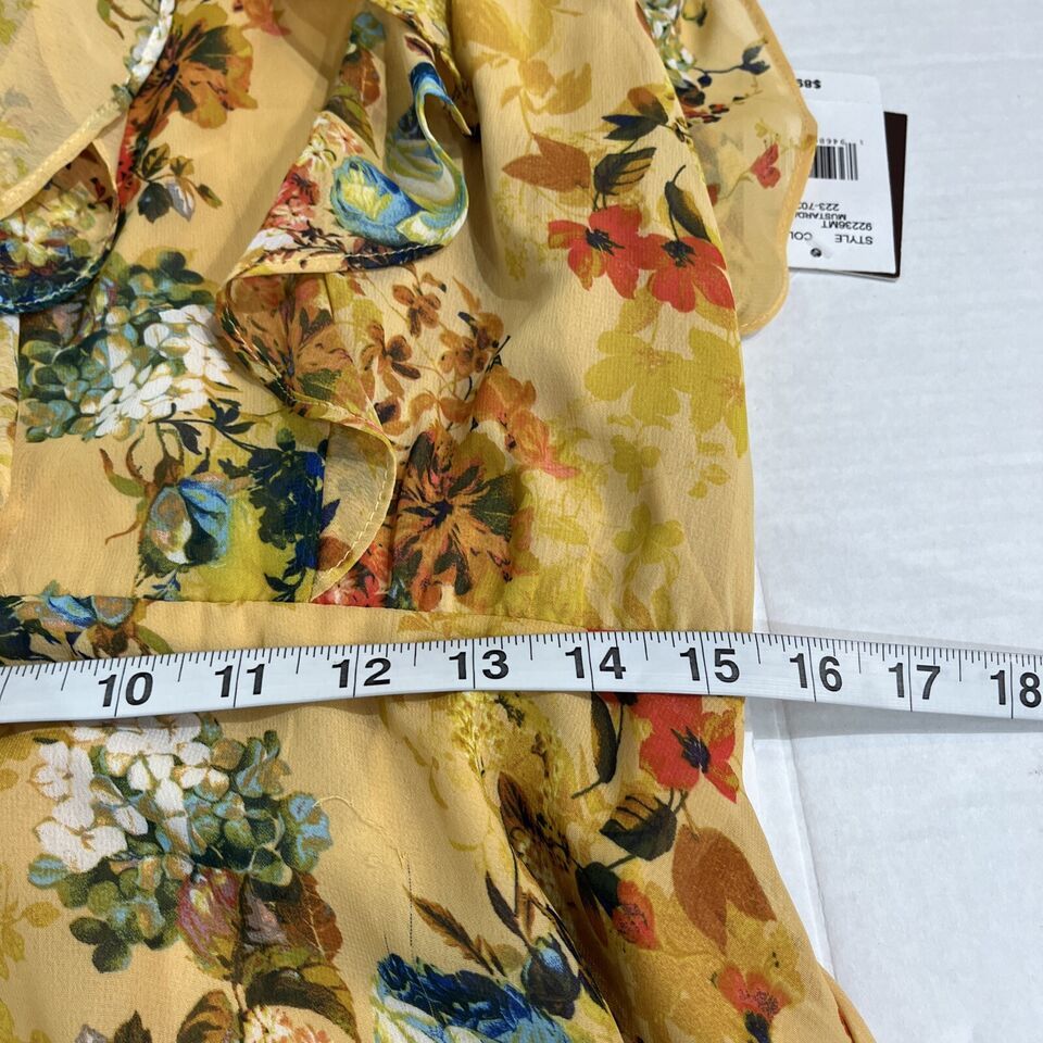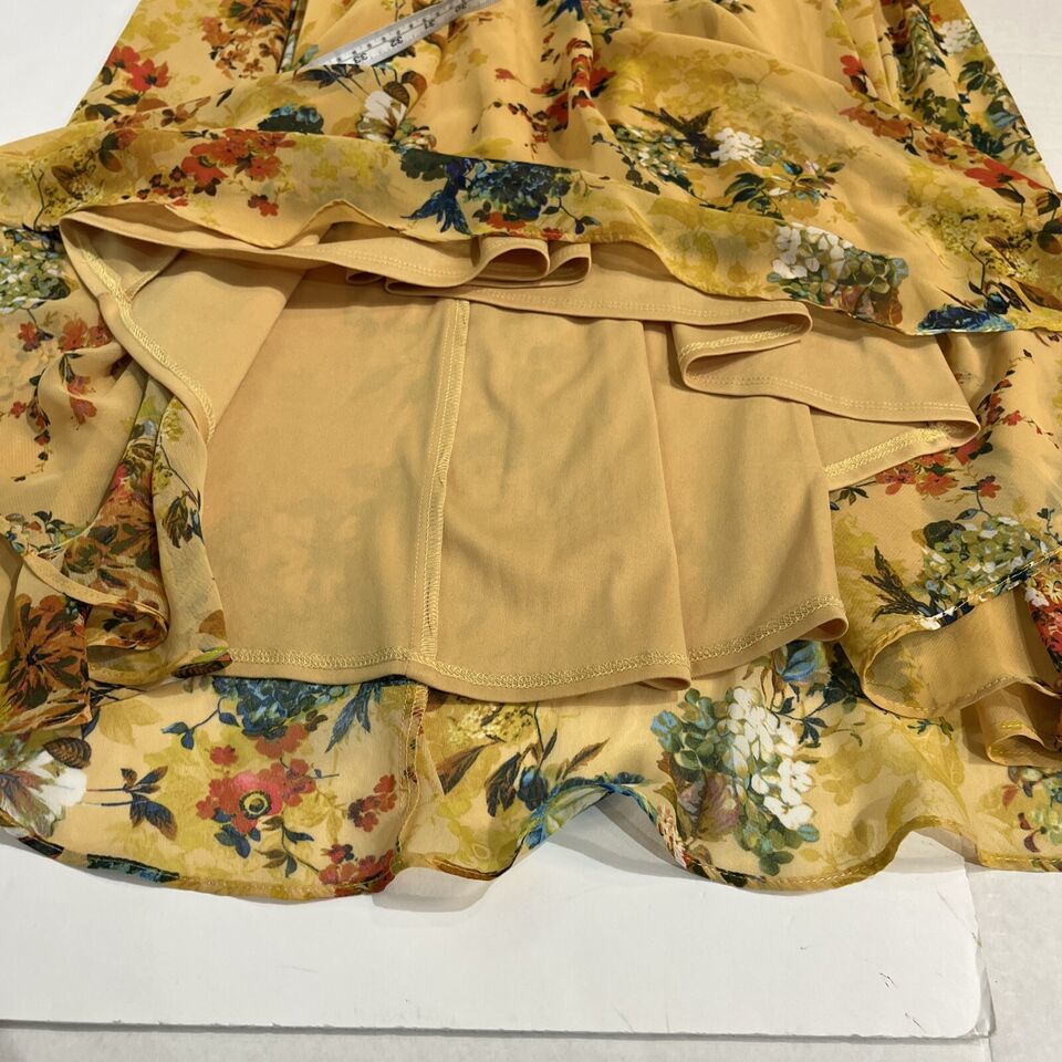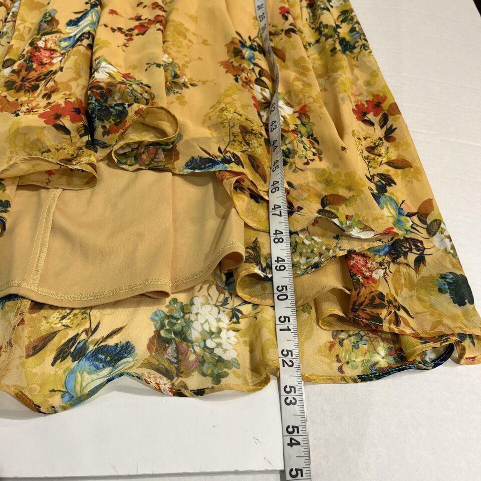Melonie T Midi Dress Womens 12 Yellow Floral Chiffon Ruffle Fairy Cottagecore