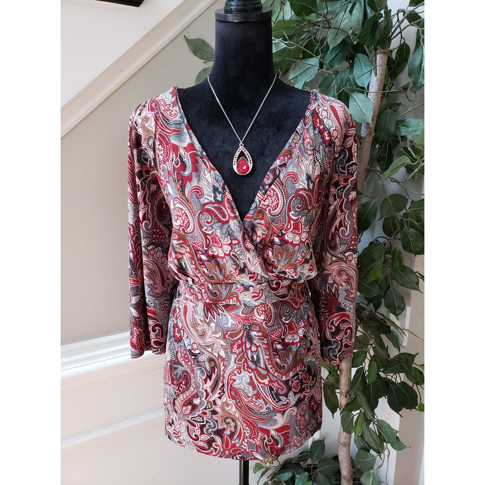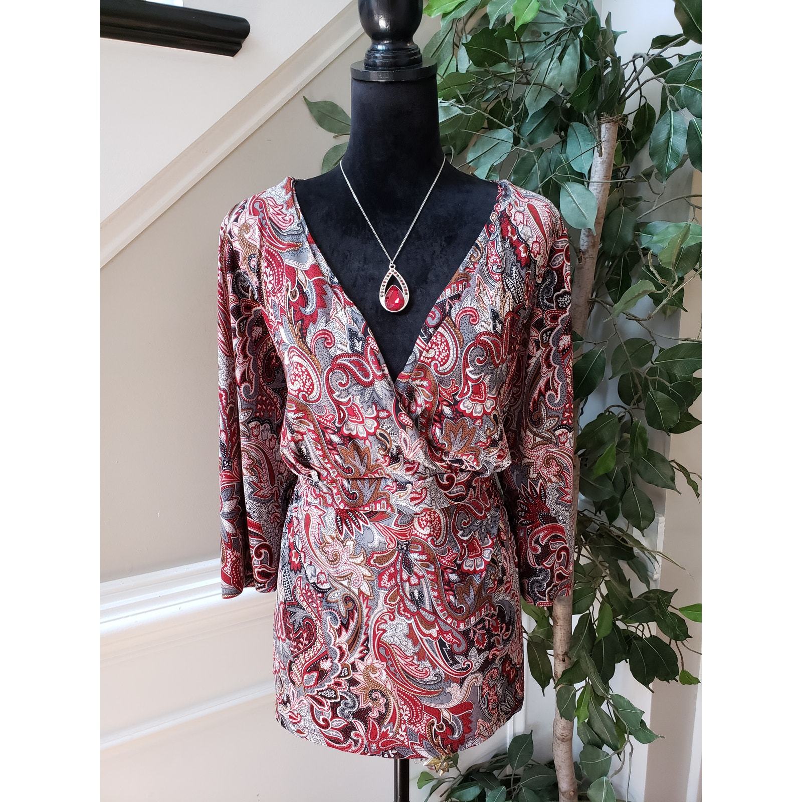 INC International Concepts Blouse Top Womens Size 2X Multi Paisley Wrap V Neck