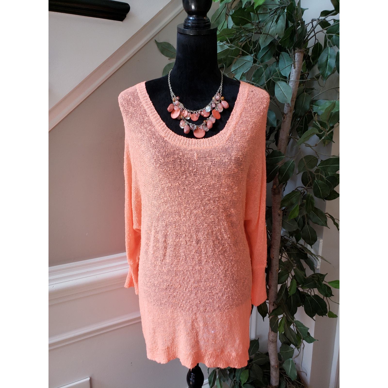 Cato Tunic Top Women 18/20W Orange Knitted Solid Long Sleeve Round Neck Pullover