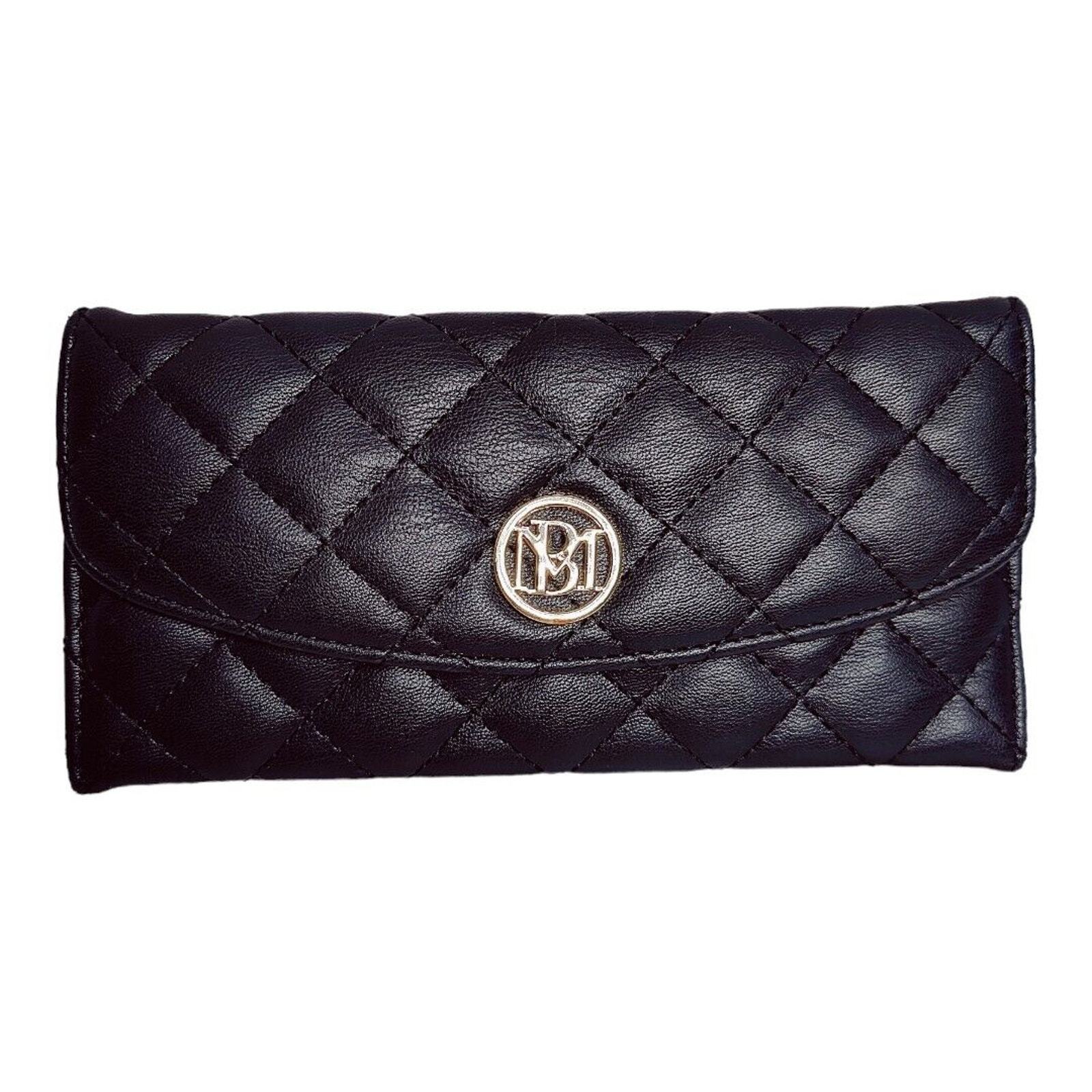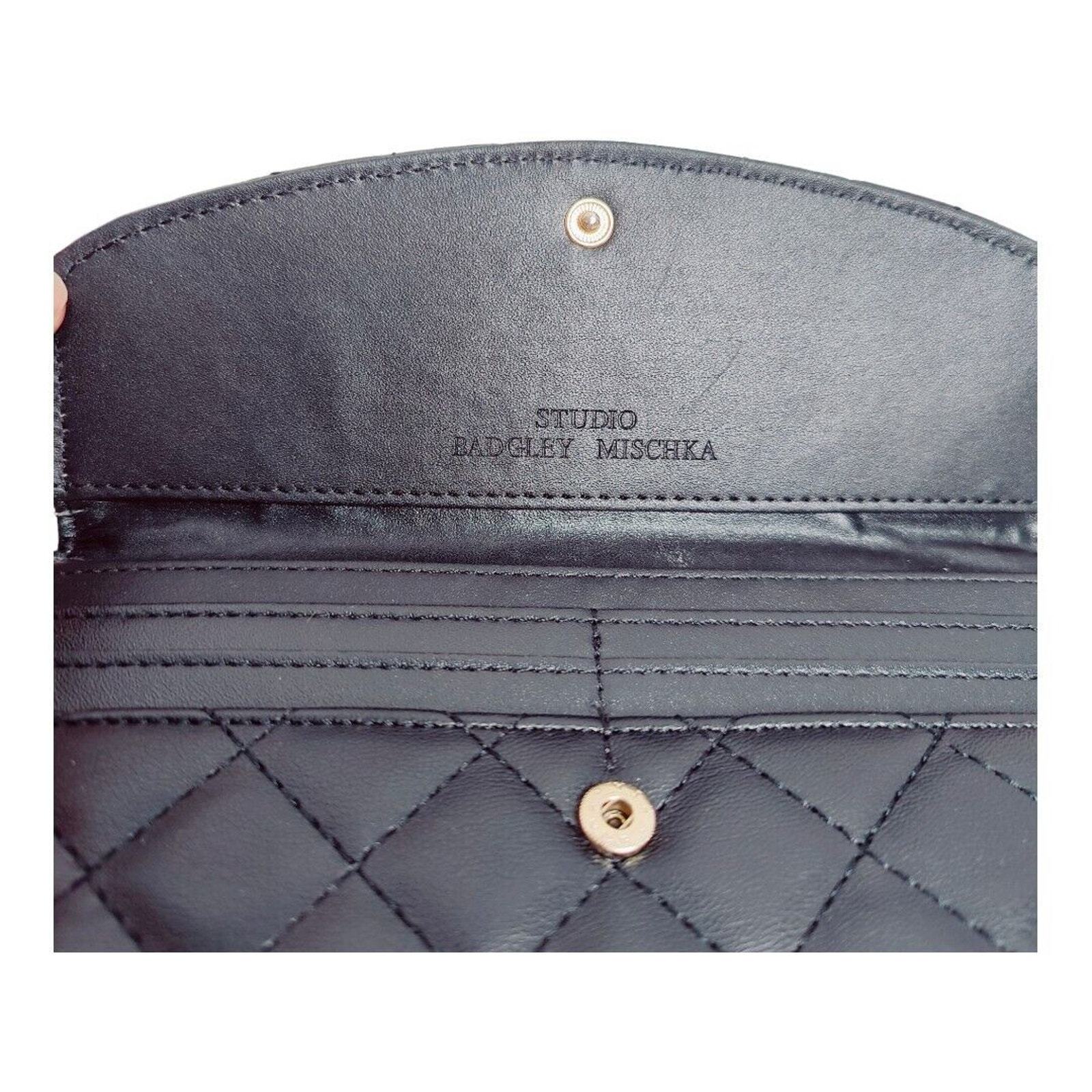 Badgley Mischka Black Vegan Leather Diamond Quilted Studio Card Holder Wallet