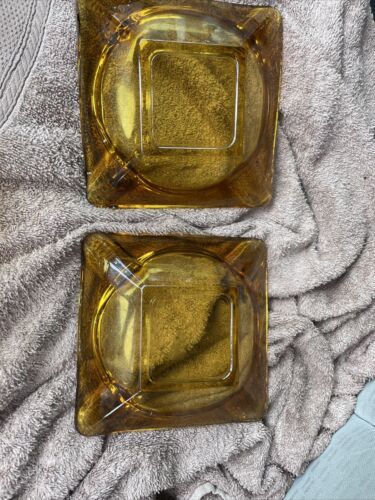 Vintage Anchor Hocking Ashtrays Square Amber and similar items