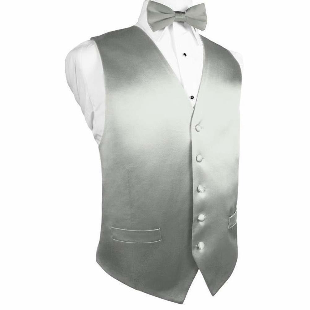 Solid Color Men's 5 Button Noble Silk Vest with Matching Bow Tie - Many Colors (