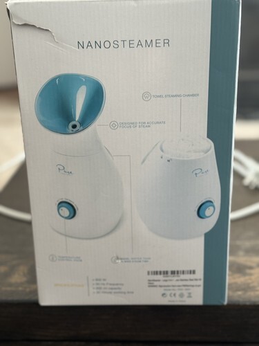 This is a lightweight facial steamer. Easy to use and in perfect condition. Best used with distilled water. Plug in, and it starts producing steam. Great for clogged pores, acne, excessive oil, or blackheads.