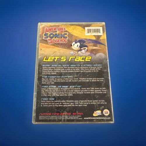 The product is a standard edition DVD of "Adventures of Sonic the Hedgehog: Let's Race" by Ncircle. The DVD features additional scenes and is in English language with a rating of NR. It falls under the genre of Children's Video and the sub-genre of Animation/Anime, making it suitable for young audiences who enjoy animated content. The movie follows the adventures of Sonic the Hedgehog, a popular video game character, in a racing-themed storyline.Please look at our store for unique collectibles and quality vintage items.