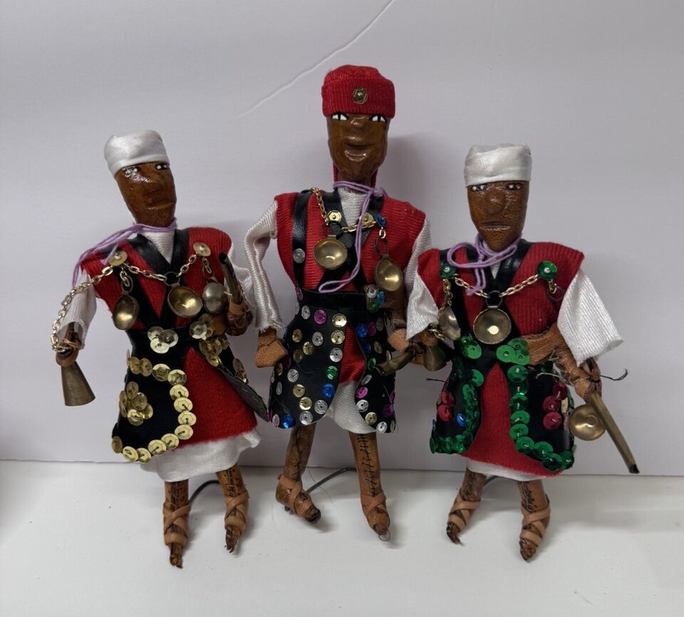 3 Vintage Moroccan Folk Art Doll, Handmade Leather Moroccan Doll- Beautiful-
