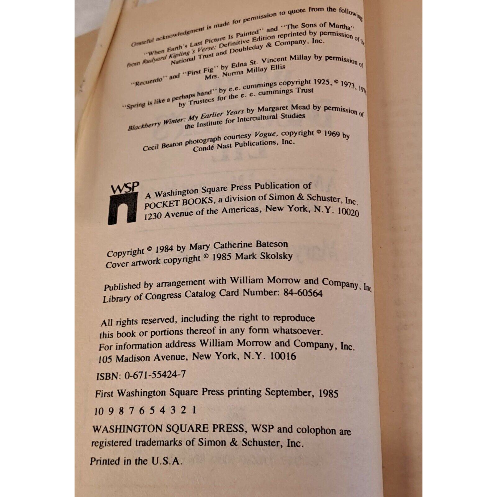 With a Daughter's Eye by Mary C, Bateson (1985, 1st Mass Market Paperback)
