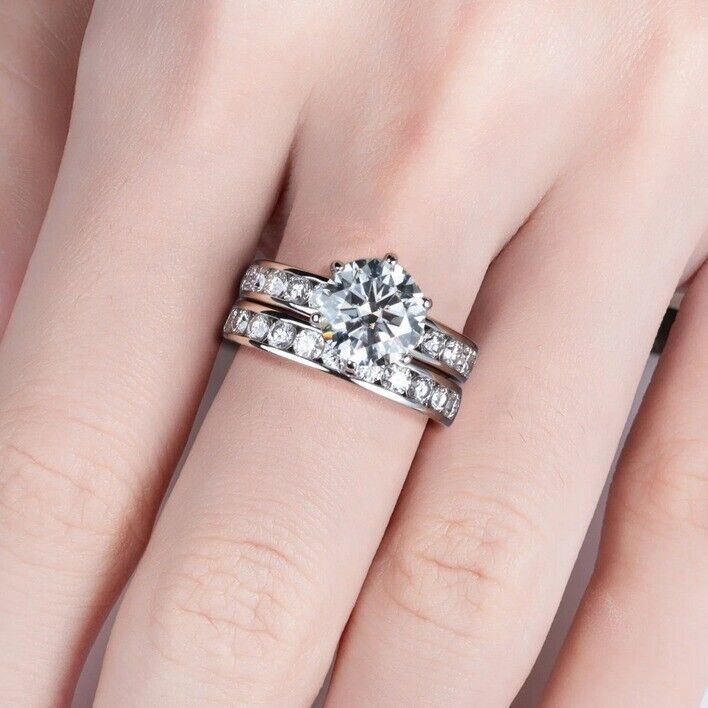 Luxury 18K 925 Sterling Silver 4.3CT Full Moissanite Engagement Ring Set
