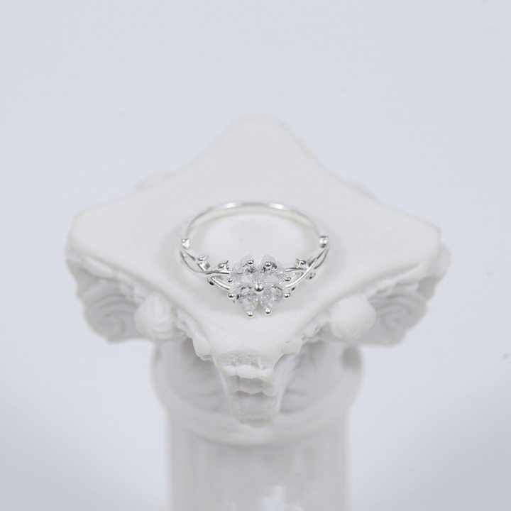 925 Silver Heart Cut Moissanite Floral Ring 925 Silver Unique Engagement Ring
