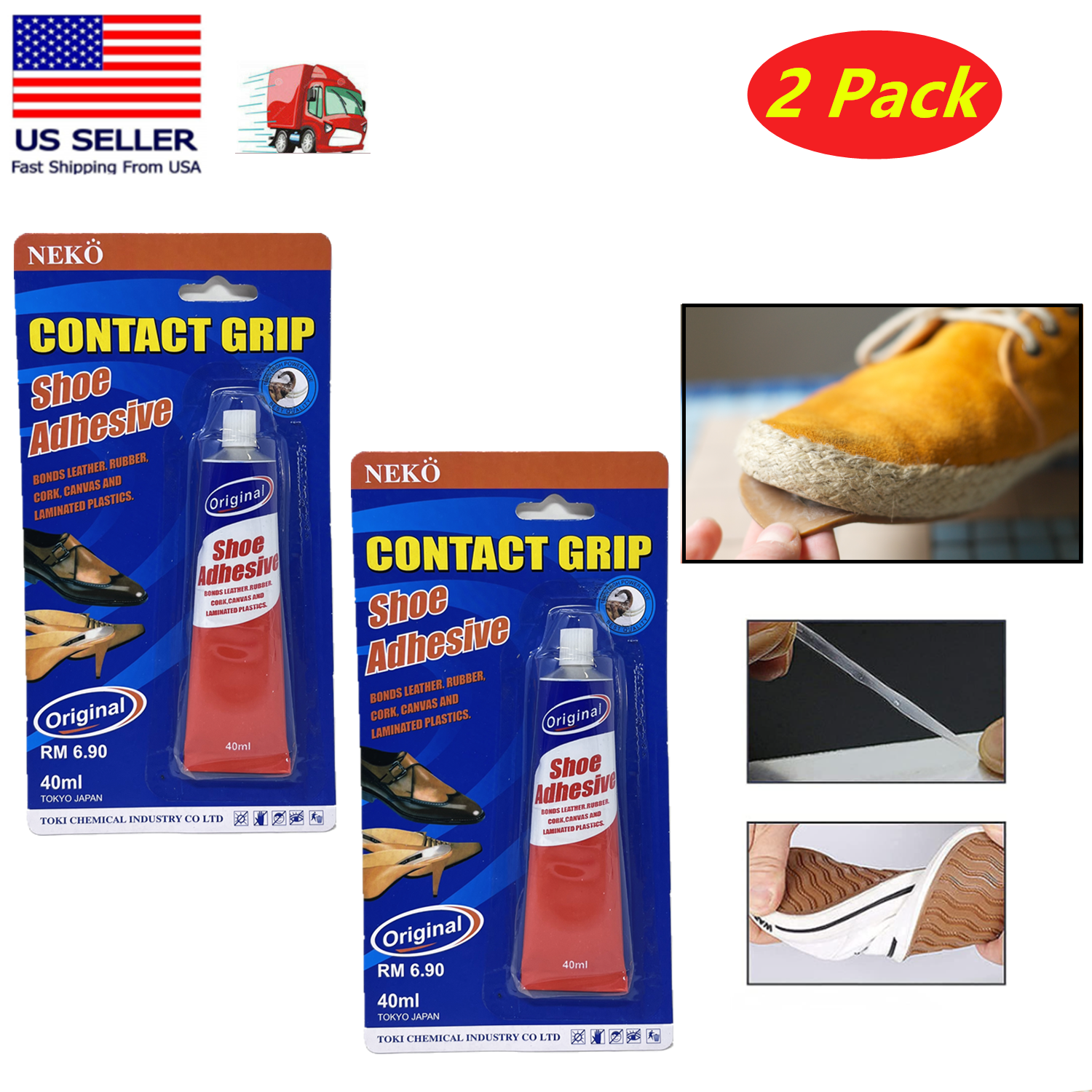 2x 40 ml Shoe Adhesive Glue for Leather Vinyl Rubber Cork Canvas Contact Grip