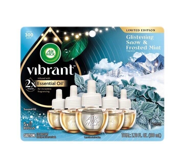 Air Wick Vibrant Essential Oil Refill, Glistening Snow & Frosted Mint, Pack of 5