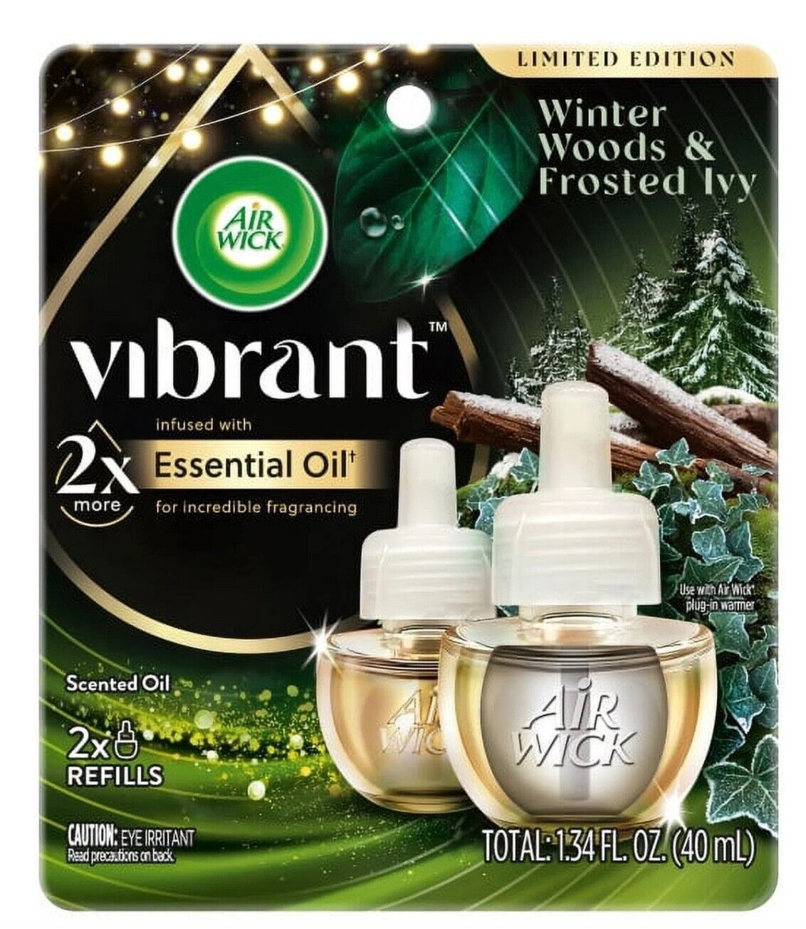 Air Wick Vibrant Essential Oil Refills, Winter Woods & Frosted Ivy, Pack of 2