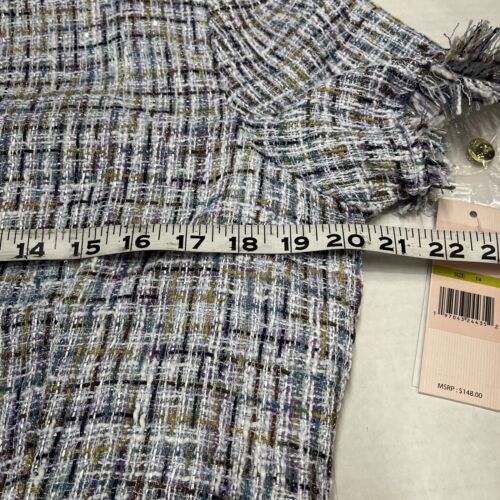 Nanette Lepore Tweed Dress Womens 14 Blue Shift Boucle Knit Fringe Trim Office