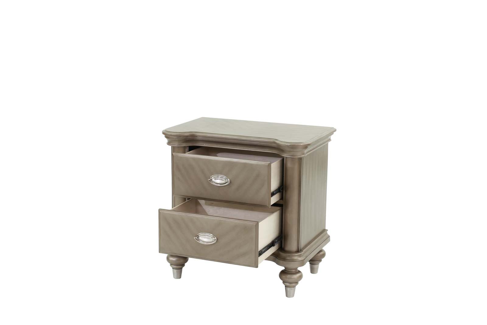 Modern luxury with a hint of glamour is displayed with this nightstand that features a 2-drawers storage. This nightstand provides both functionality and aesthetic appeal, making it a perfect addition to any bedroom setting.
