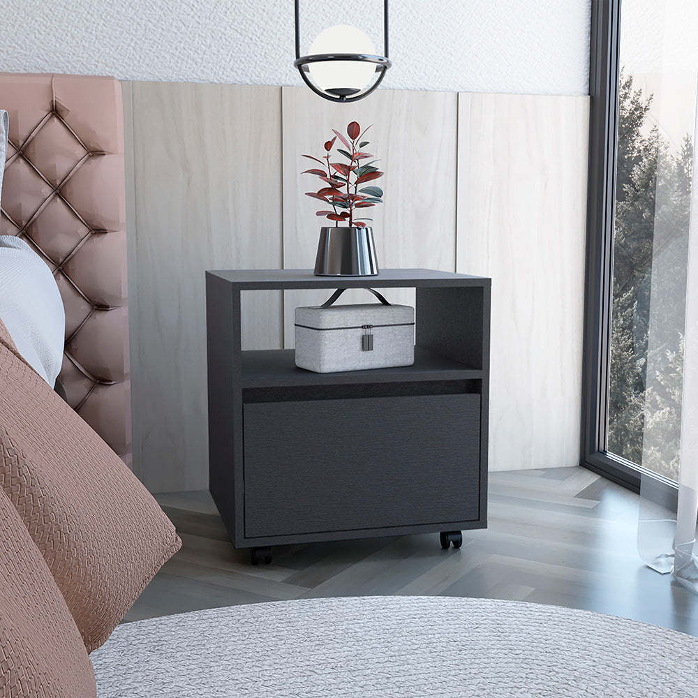 Munyochi Nightstand, 1 Drawer, Black Wengue
