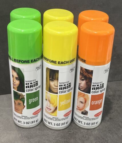 6 GoodMark Temporary Hair Color Spray (2) Green, (2) Yellow, (2) Orange 3 oz