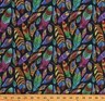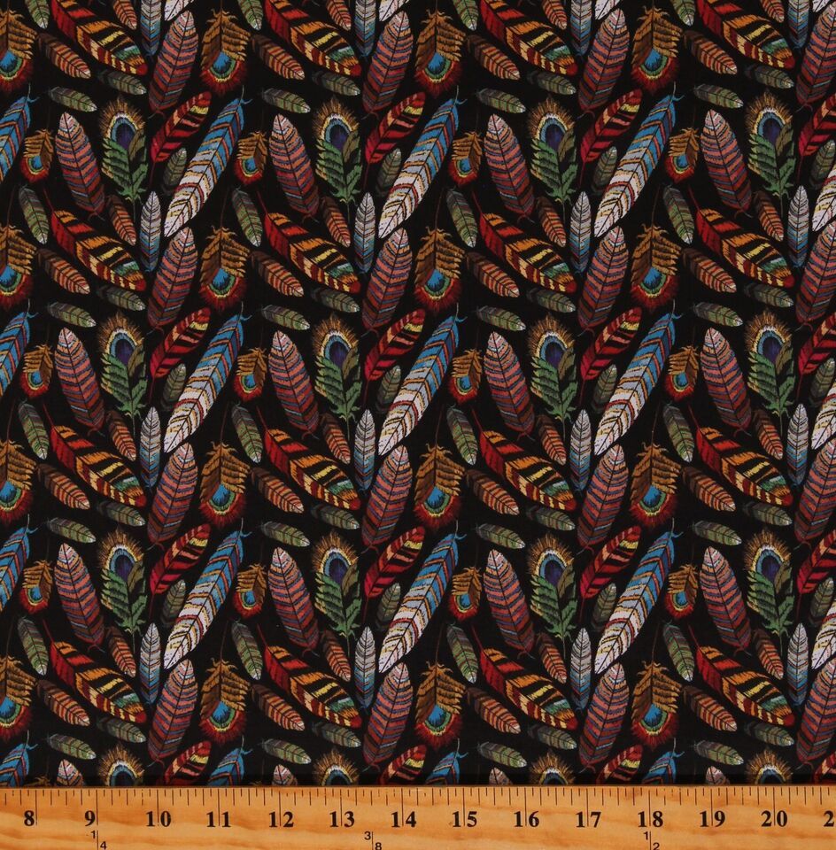 Cotton Feathers Aztec Birds Plumes Plumage Black Fabric Print by Yard D465.55