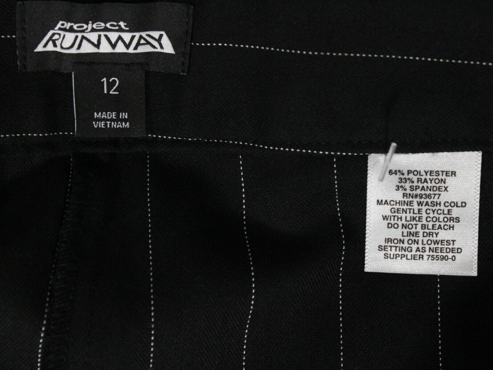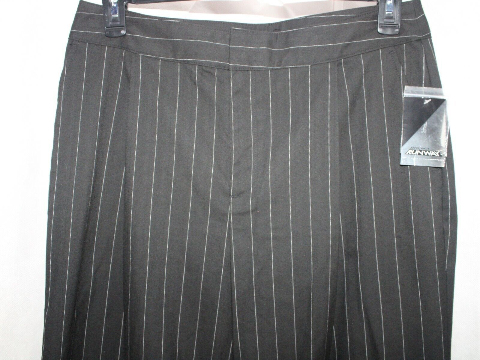 Project Runway Womens Dress Pant Wide Leg Black White Pinstripe Size 12
