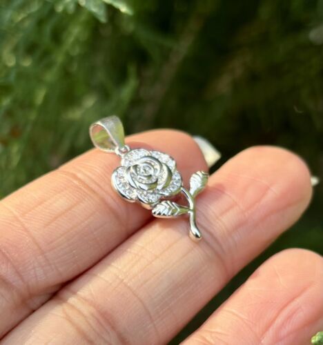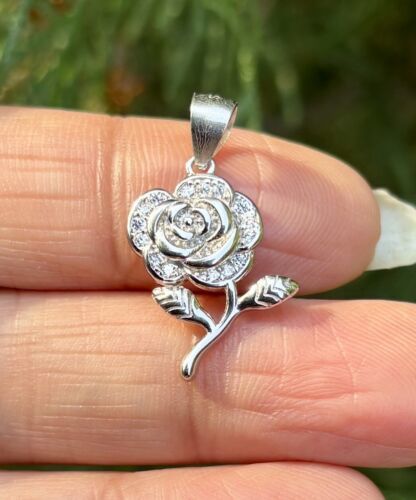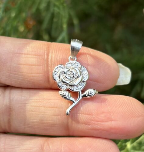 925 Sterling Silver Flower Floral Charm Pendant Cz Small Minimal Jewelry 2.25 g