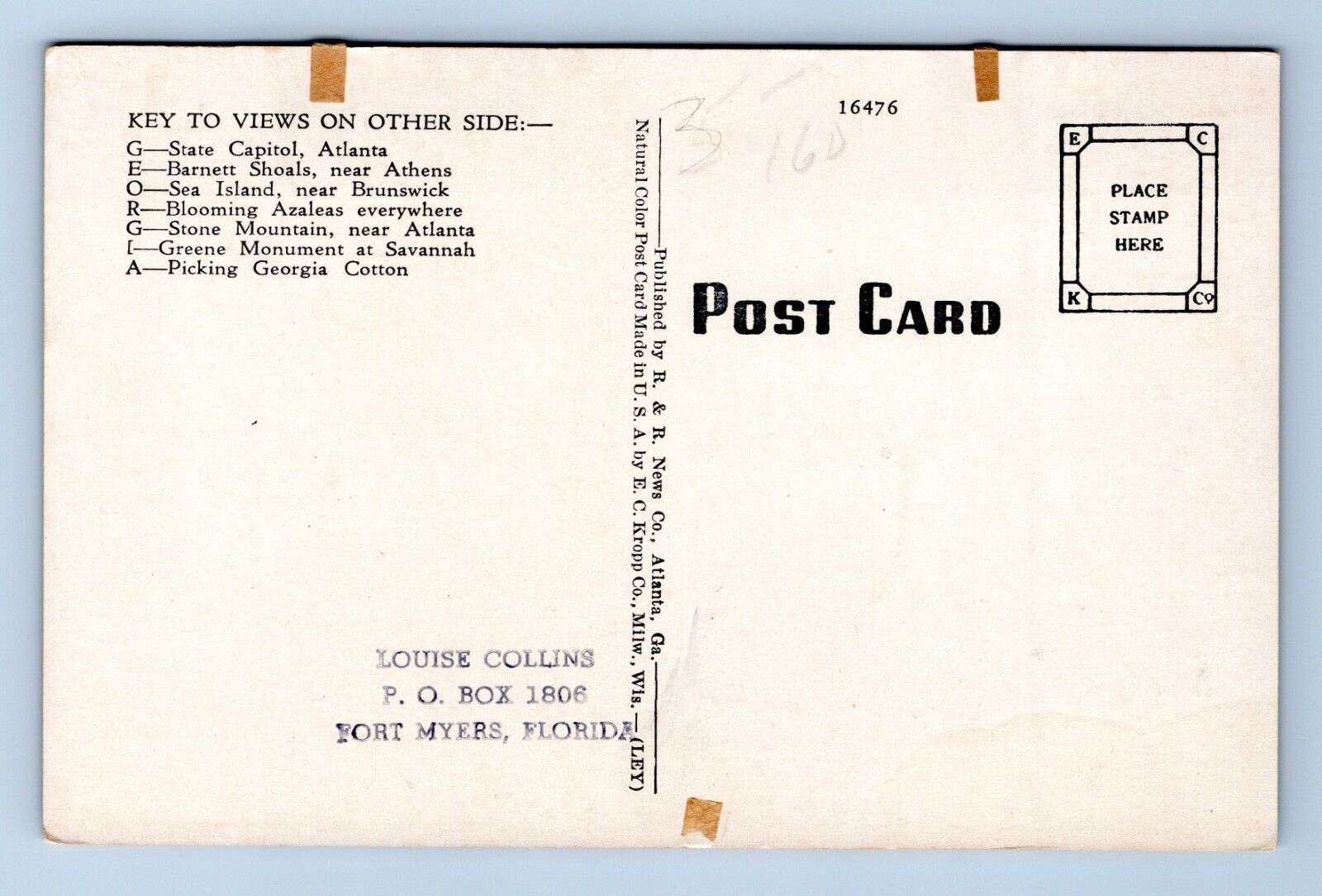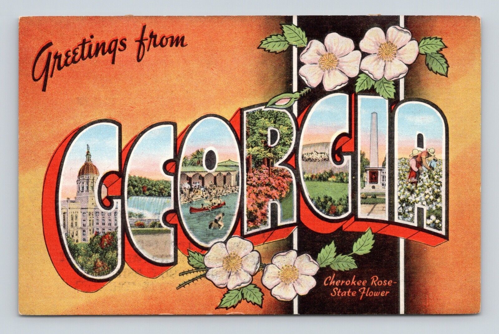 Large Letter Greetings From Georgia GA UNP Linen Postcard F19