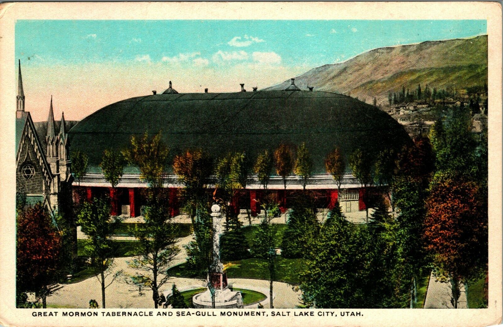 Great Mormon Tabernacle Sea-Gull Monument Salt Lake City UT UNP WB Postcard E5