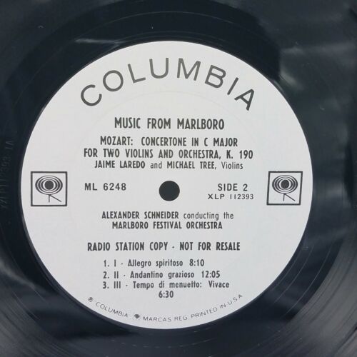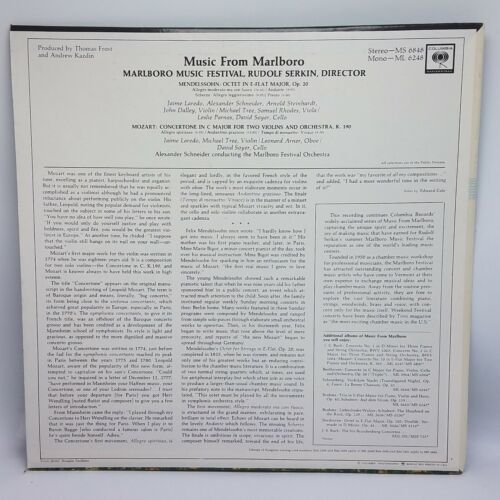 MUSIC FROM MARLBORO Mendelssohn Mozart Columbia ML6248 NM PROMO