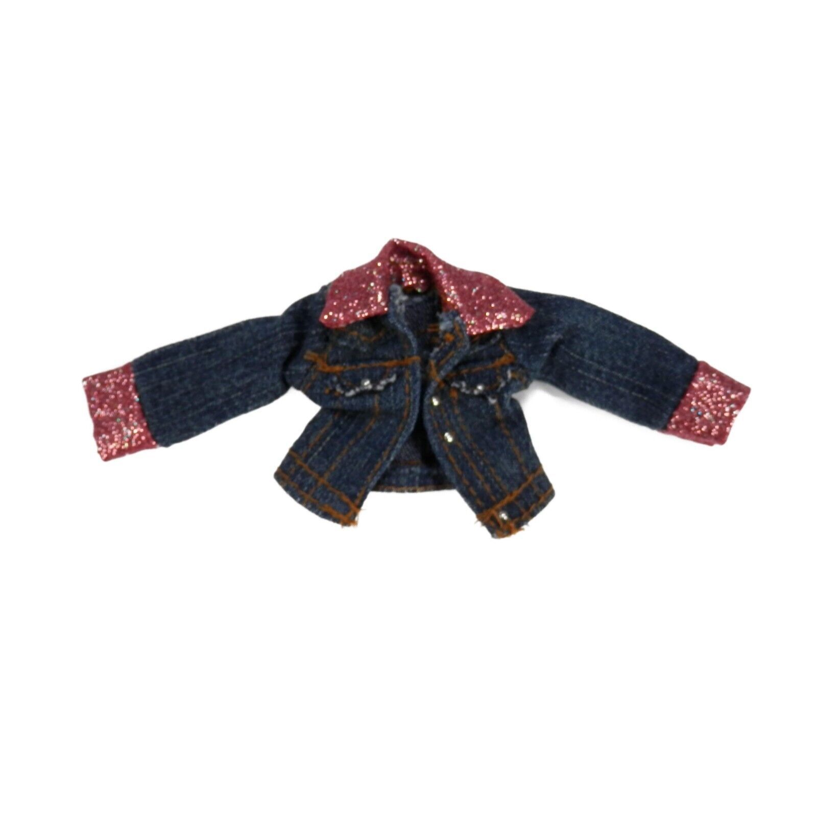 2004 Bratz Girls Nite Out Dana Denim Jean Jacket Coat Pink Glitter Cuffs