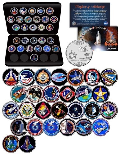 SPACE SHUTTLE COLUMBIA MISSIONS Colorized Florida Quarters U.S. 28 Coin Set NASA