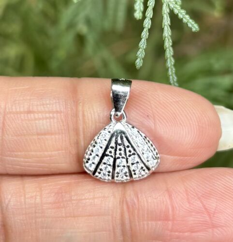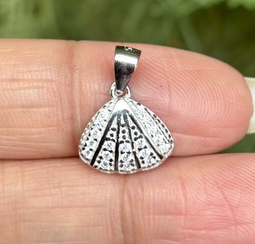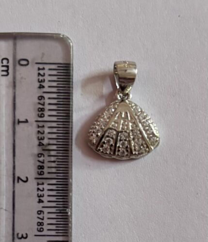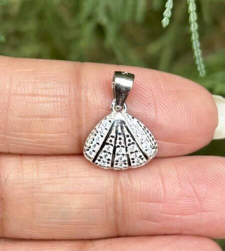 925 Sterling Silver SHELL Charm Pendant Cz Small Minimal Jewelry 1.24 g