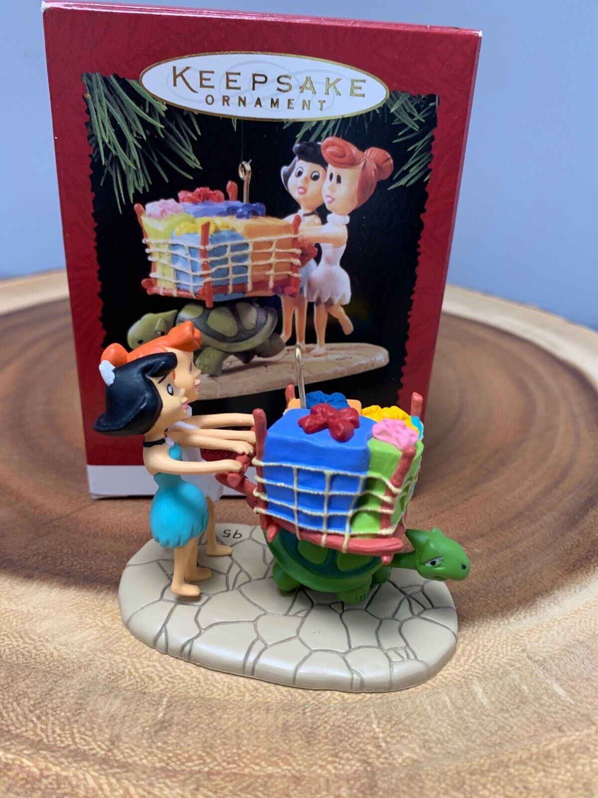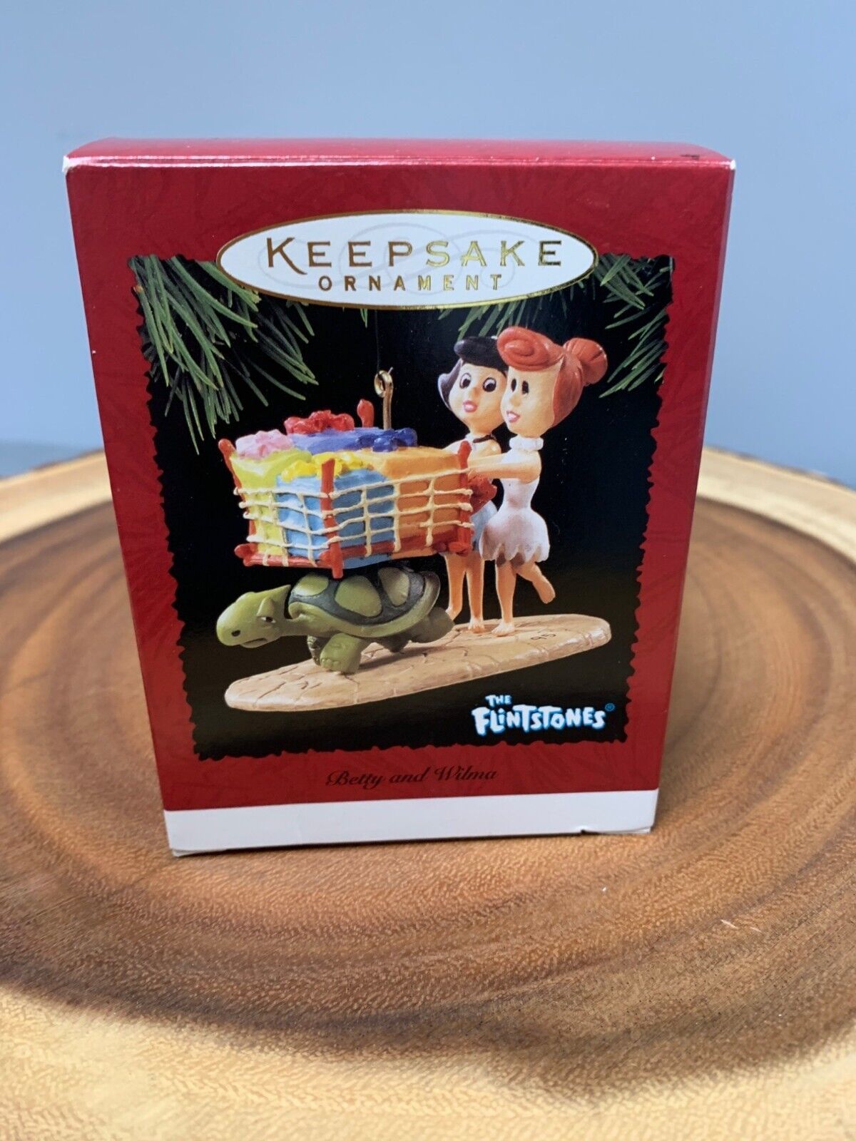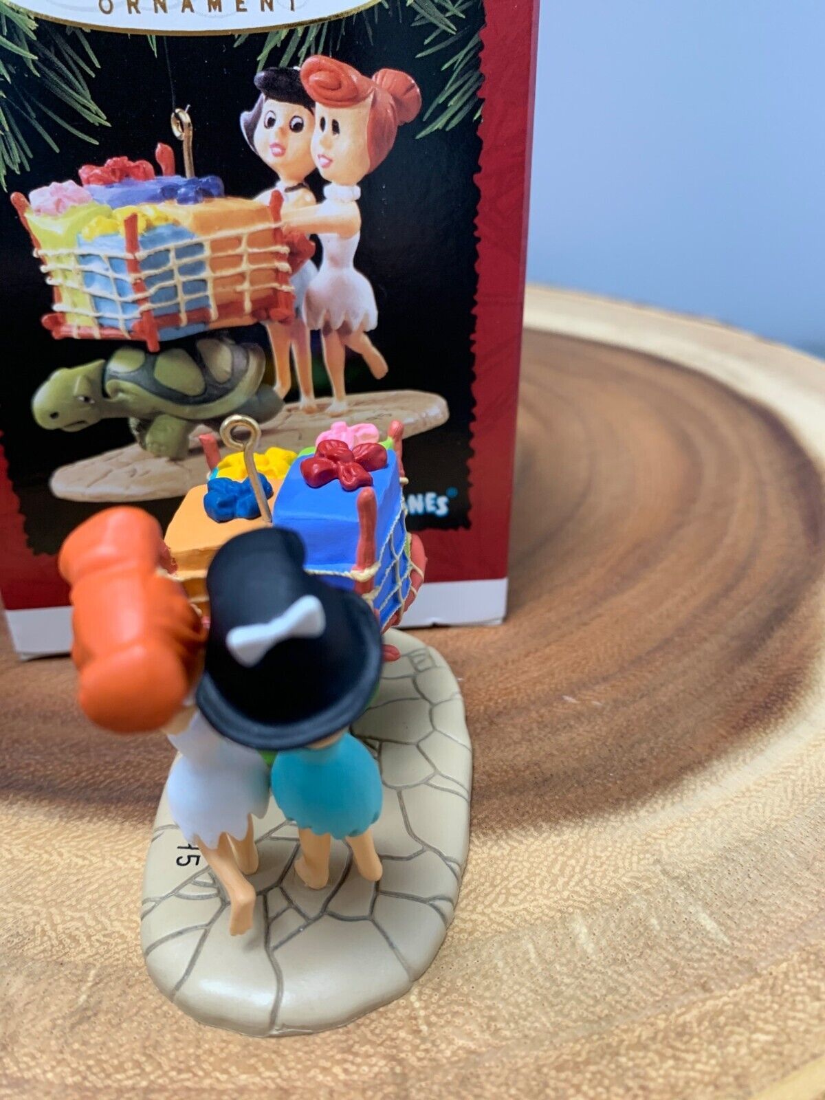 Flintstones ornament, Betty Wilma, Hallmark Keepsake, Dino presents, Christmas decoration, vintage 1995, ceramic figurine, holiday decor, cartoon character, collectible gift, prehistoric theme, Stone Age fun, licensed merchandise