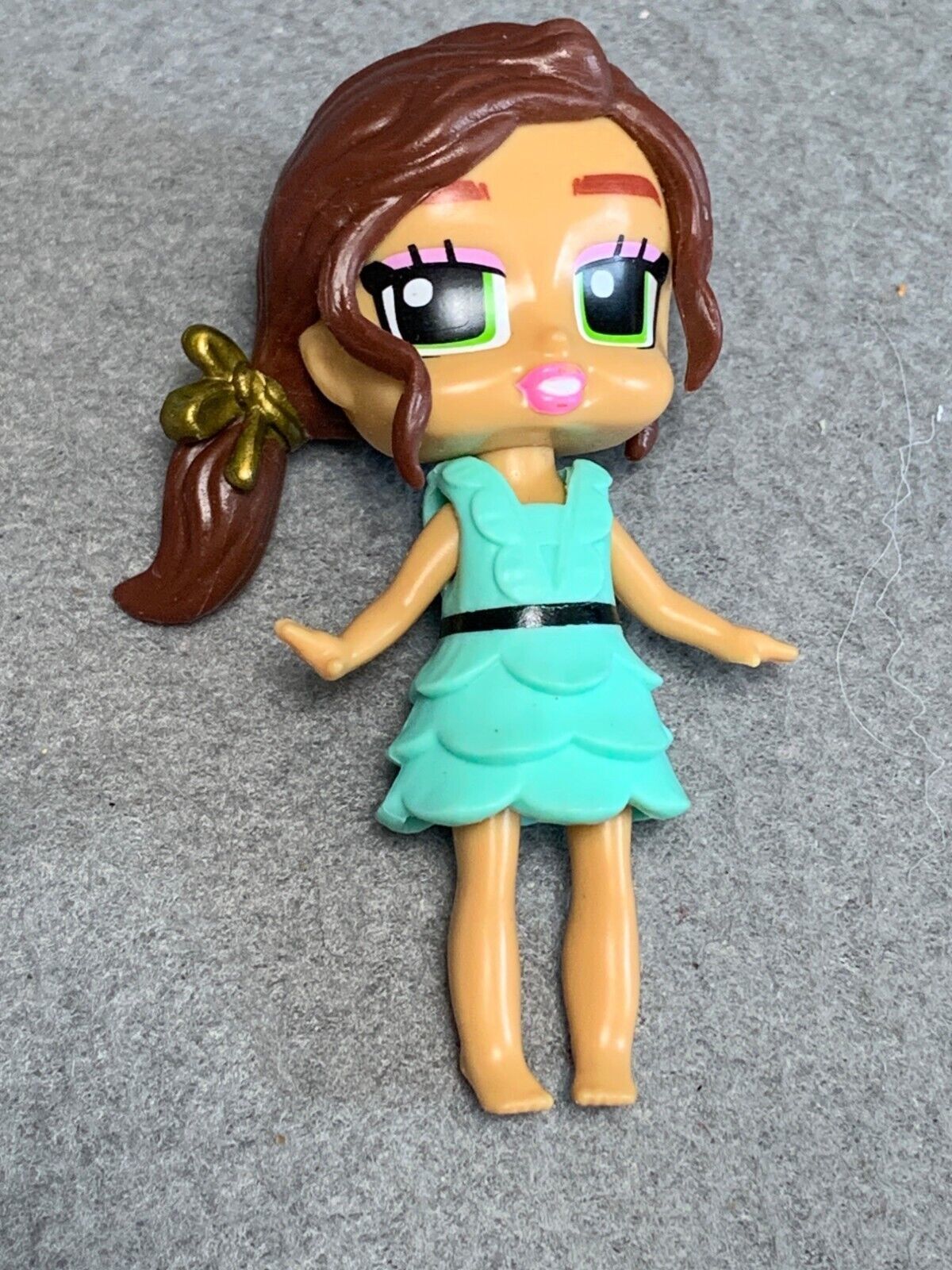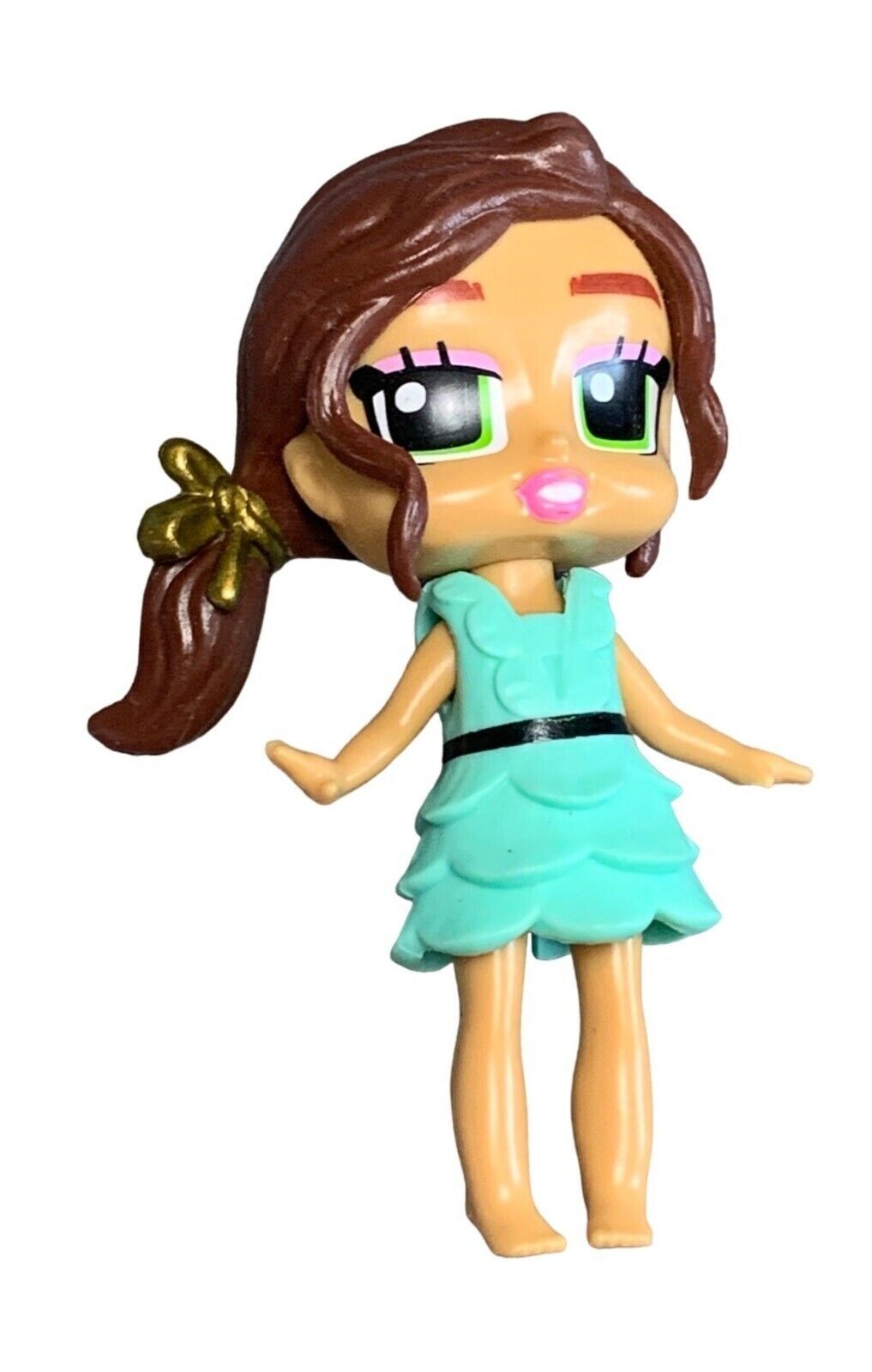 Boxy Girls Mini Doll 3" Collectible Toy with Brown Hair & Green Dress