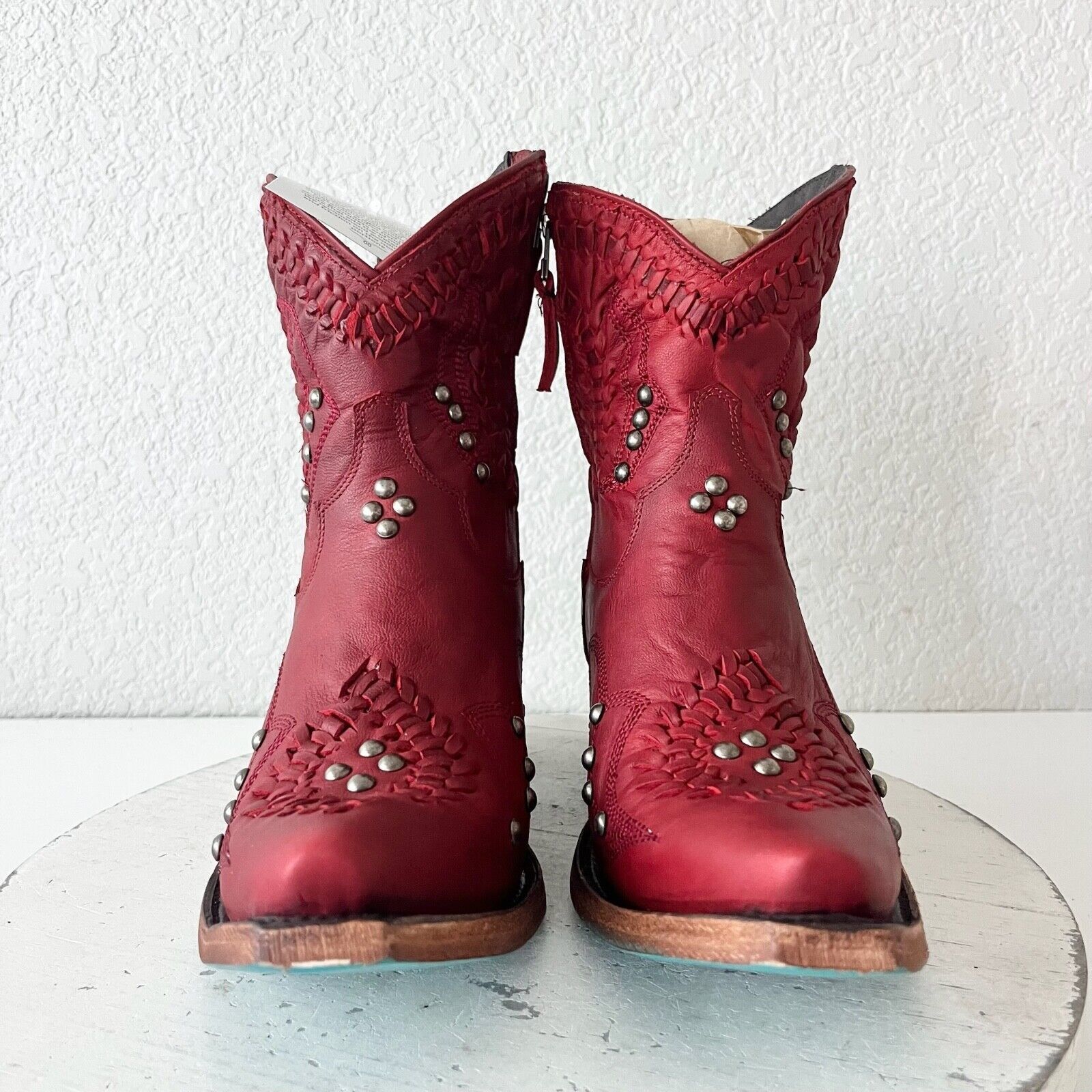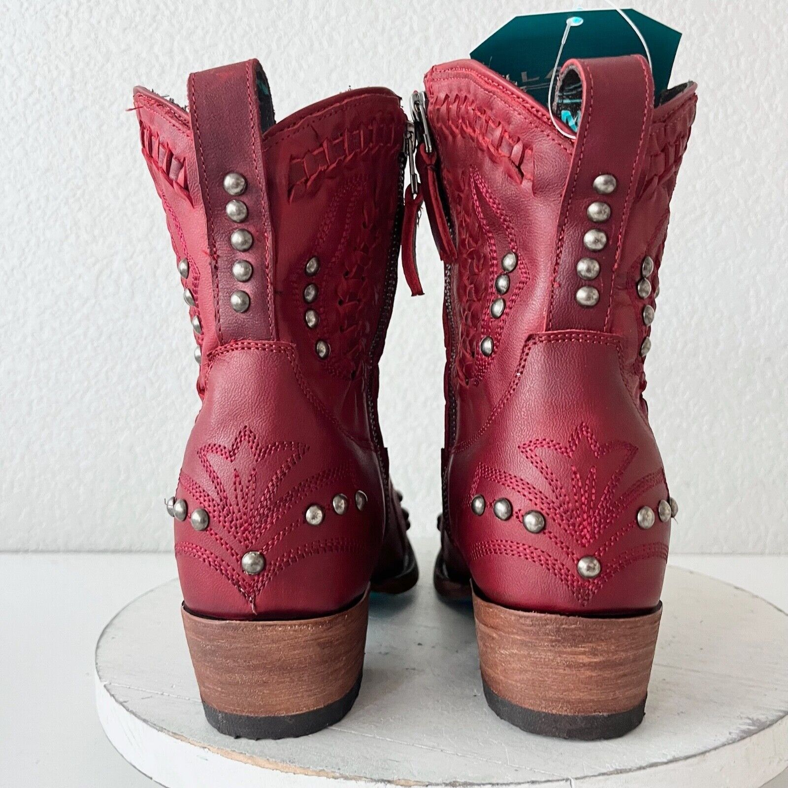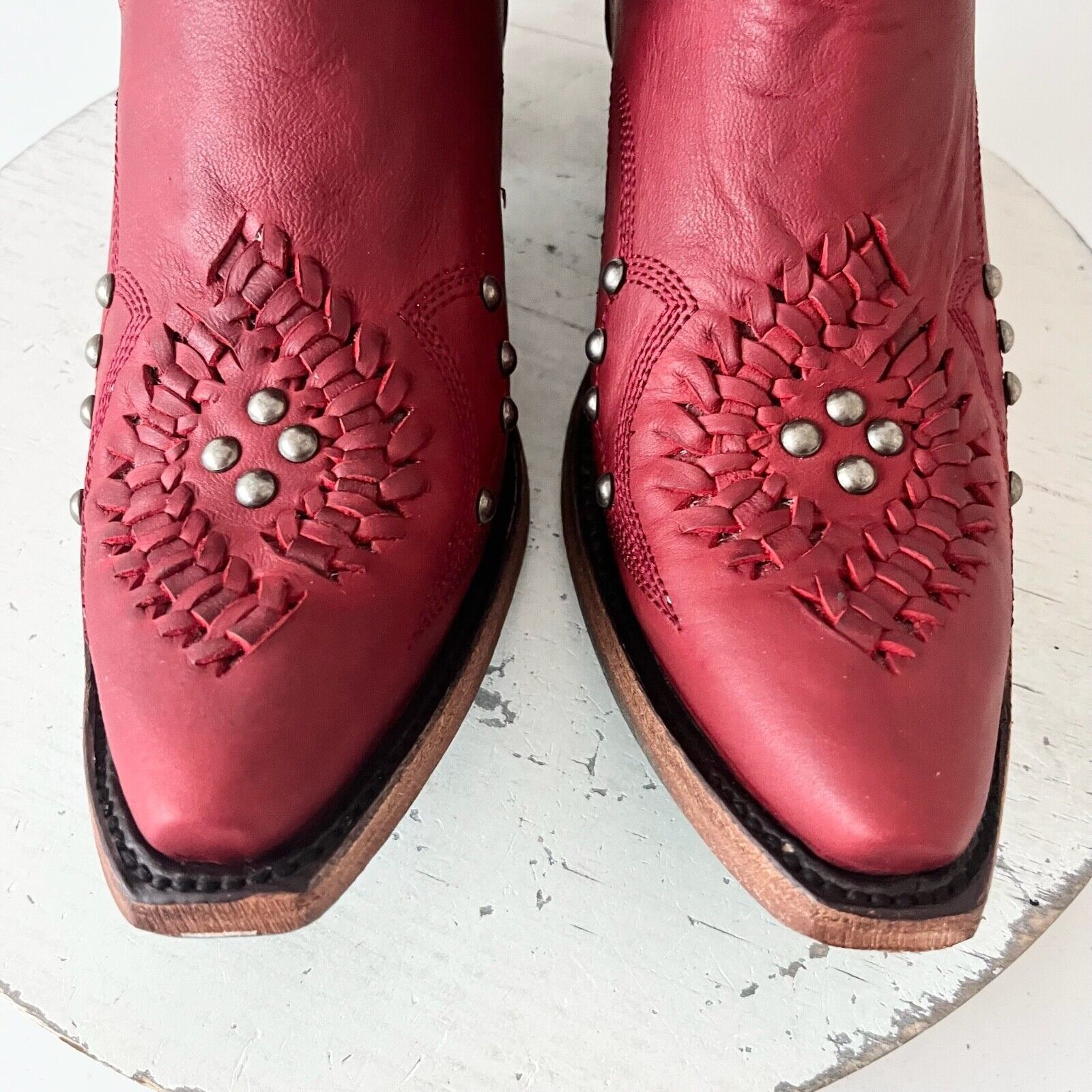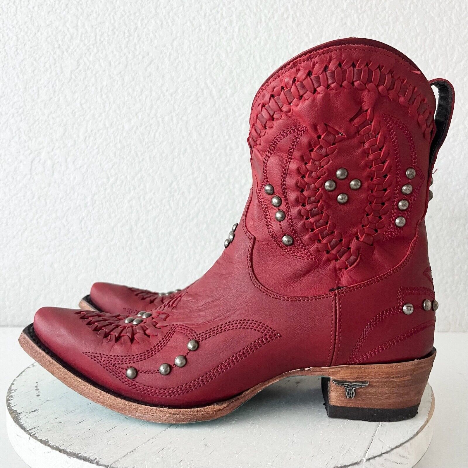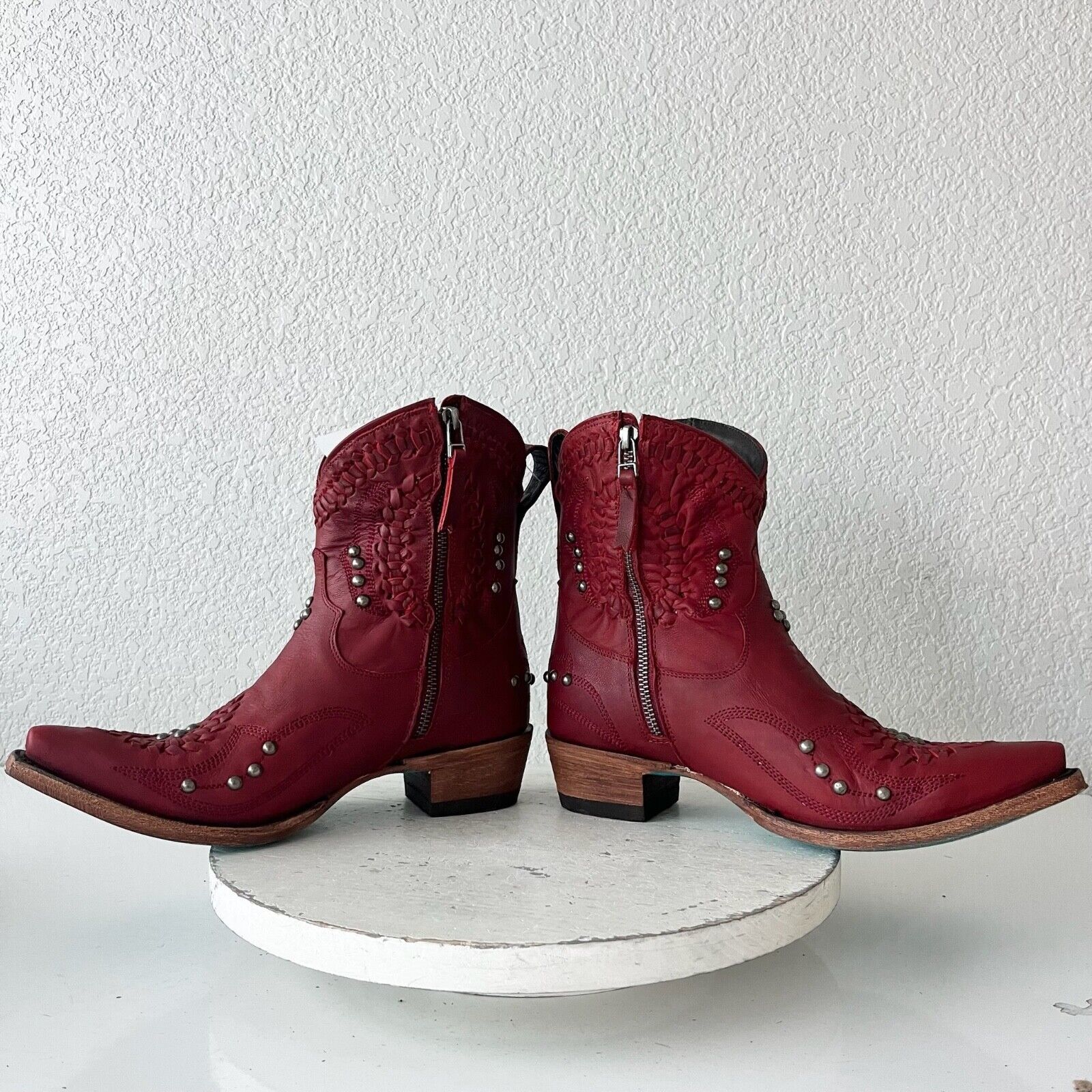 Lane COSSETTE Womens Cowboy Booties 8 Red Leather Western Cowgirl Short Boots