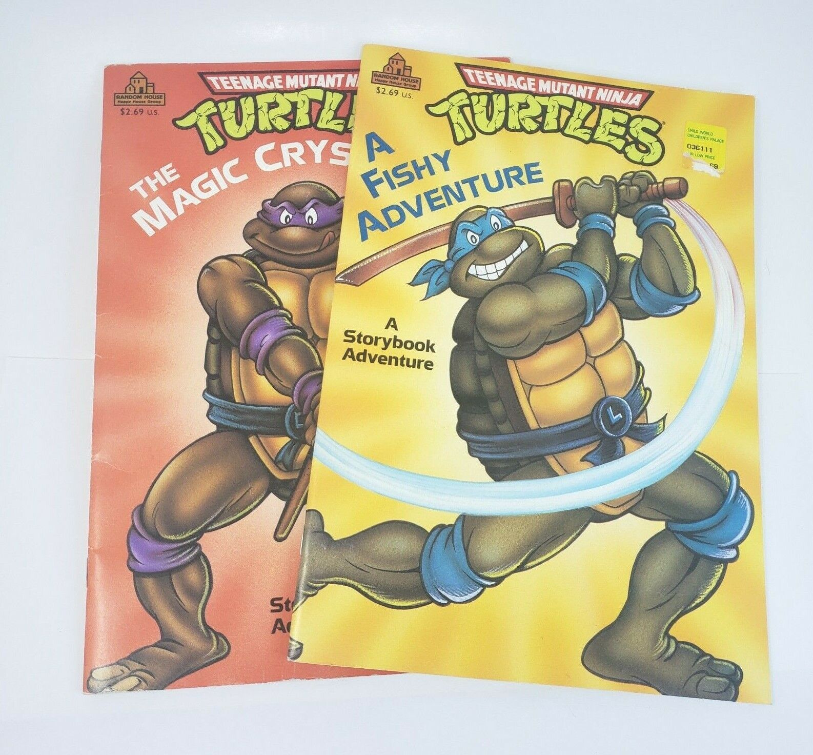 2 VINTAGE 1990 TEENAGE MUTANT NINJA TURTLES STORYBOOK BOOK MAGIC CRYSTAL FISHY