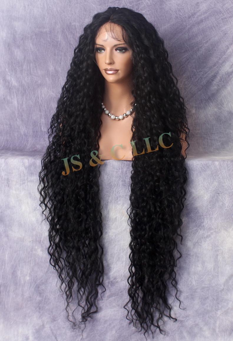 Ex Long Black Human Blend Lace Front Wig and similar items