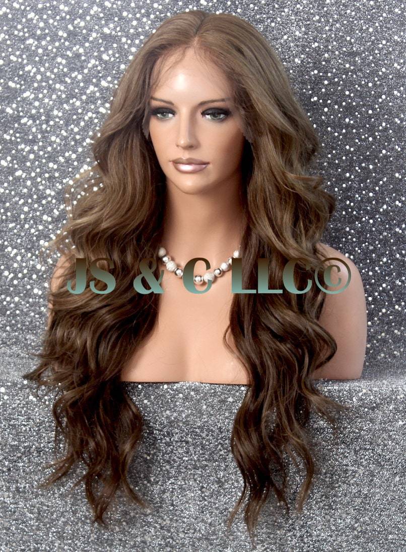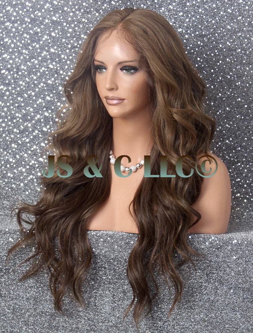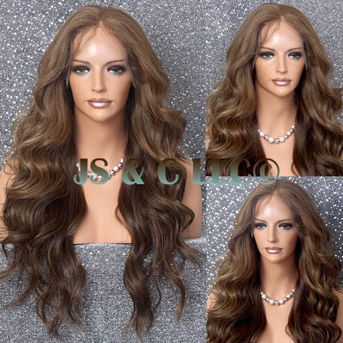 Translucent Lace Front Wig Caramel Brown mixed Center Part Wavy Curly Long Cance