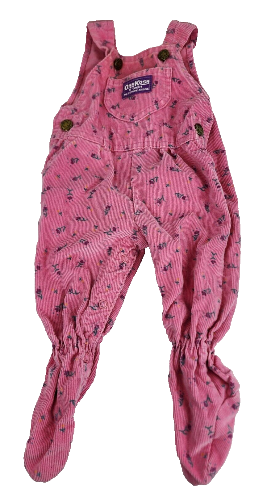 Vintage OshKosh B’Gosh One-piece Footed Corduroy Floral Print Overalls 3-6 Mo