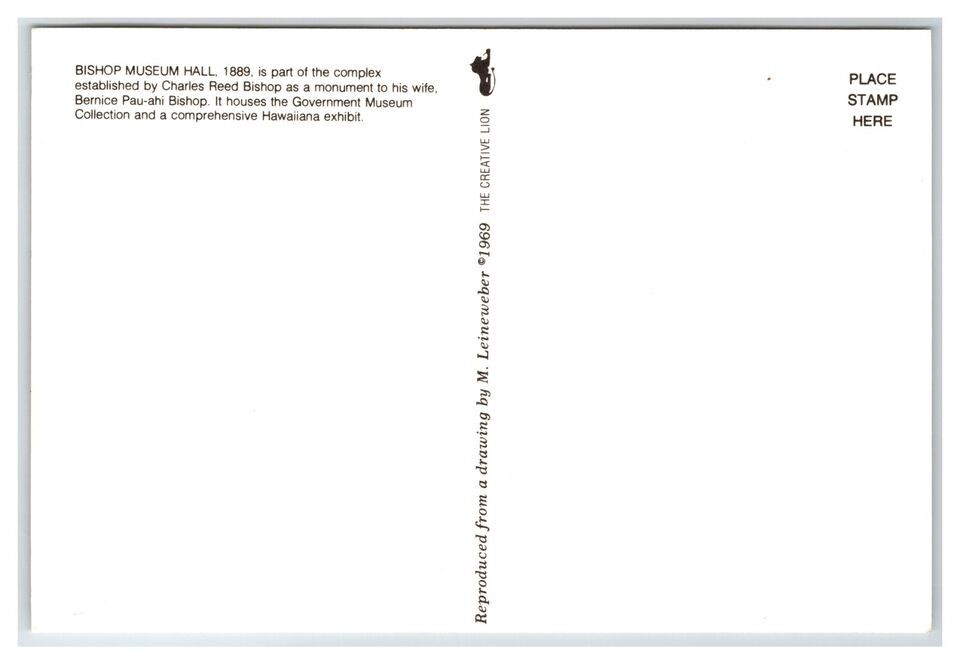 Artist View Bishop Museum Hall Honolulu Hawaii HI UNP Continental Postcard O21