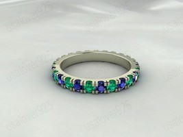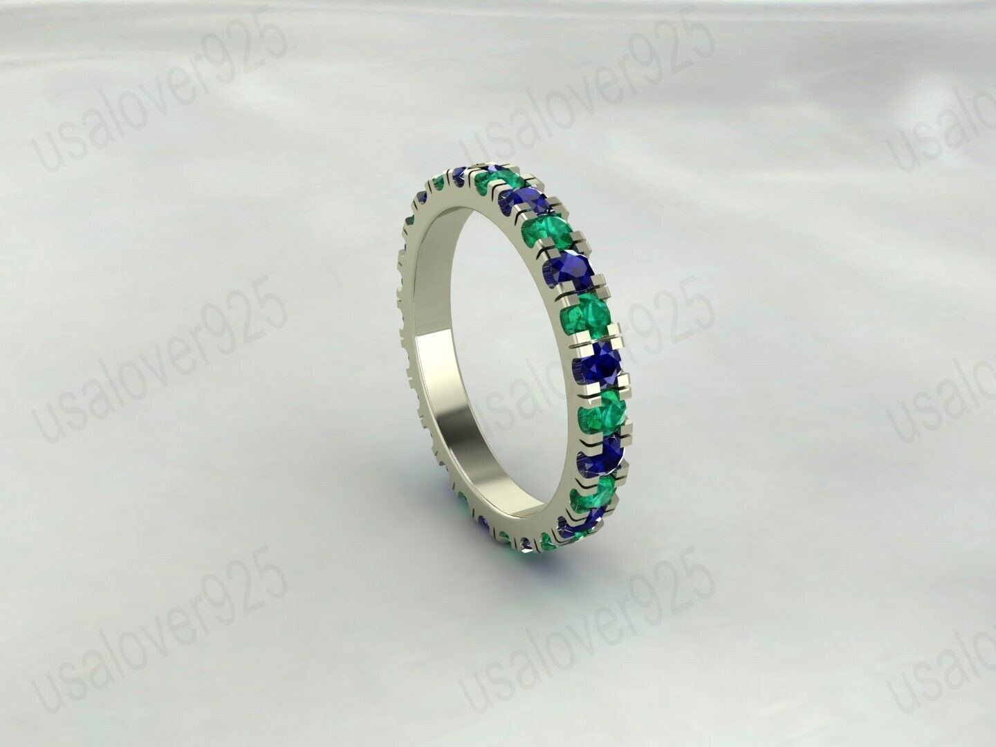 Sapphire & Emerald Gemstone Full Eternity Women Band Ring, 925 Silver Jewelry