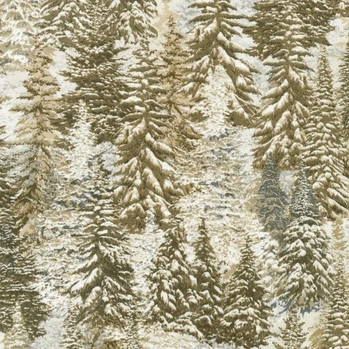 Cotton Pine Trees Snow Covered Evergreens Branches Winter Christmas Holiday Landscape Green Silver Metallic Nocturne Cotton Fabric Print by the Yard (P7595-pine/silver)