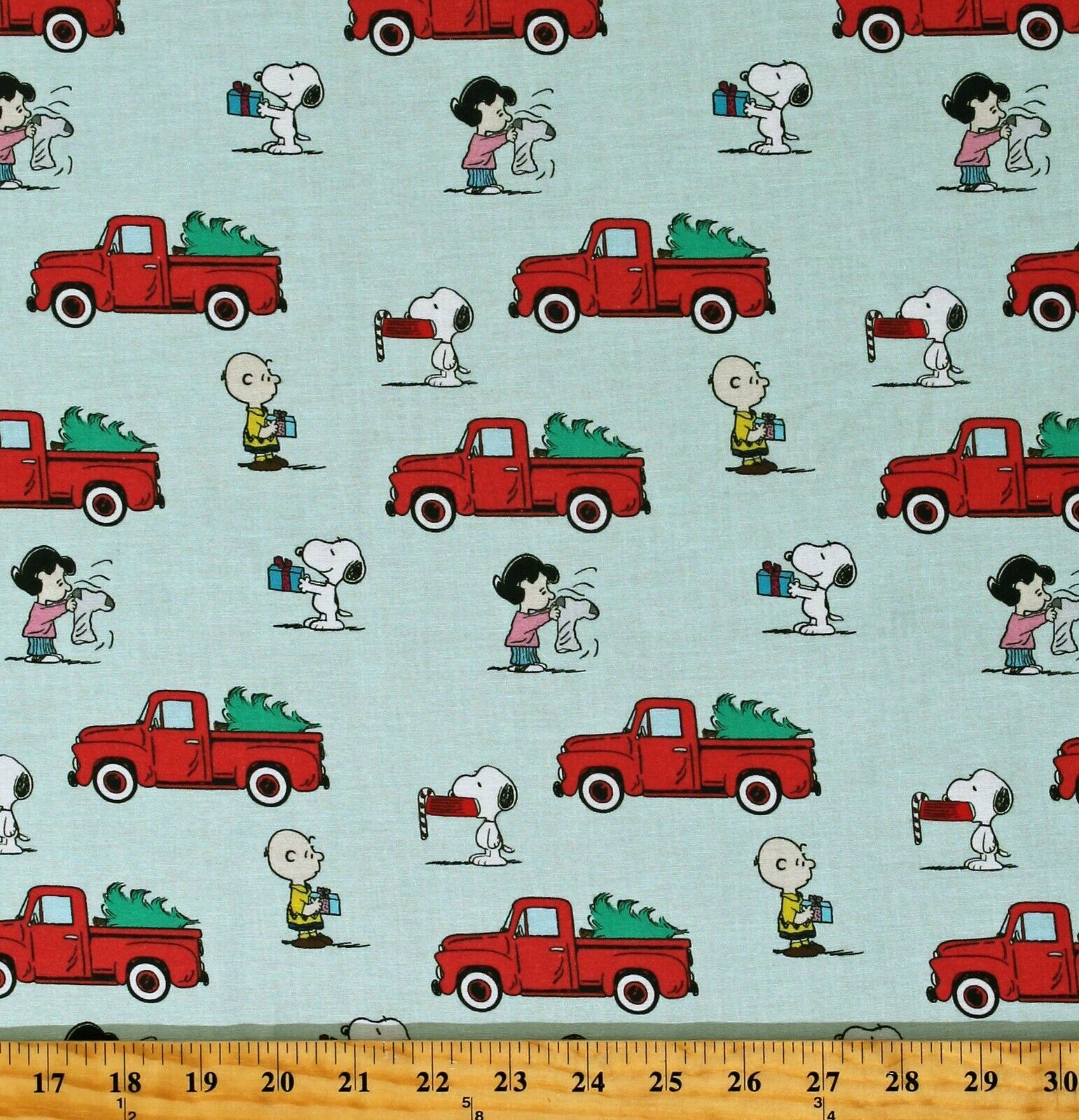 Cotton Charlie Brown Christmas Peanuts Truck Fabric Print by the Yard D405.54