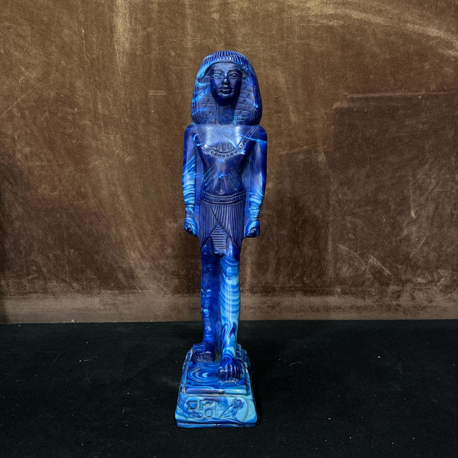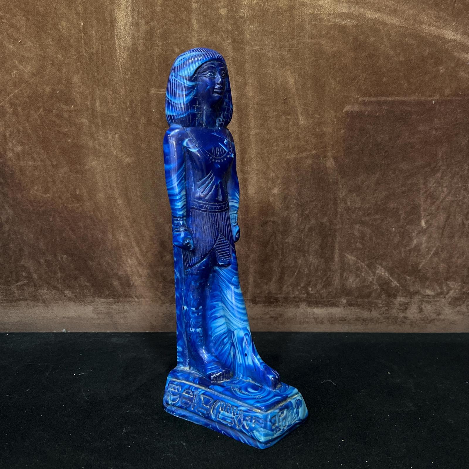 Mummy Queen Isis Egyptian figurine , Alabaster blue stone Egyptian mummy statue