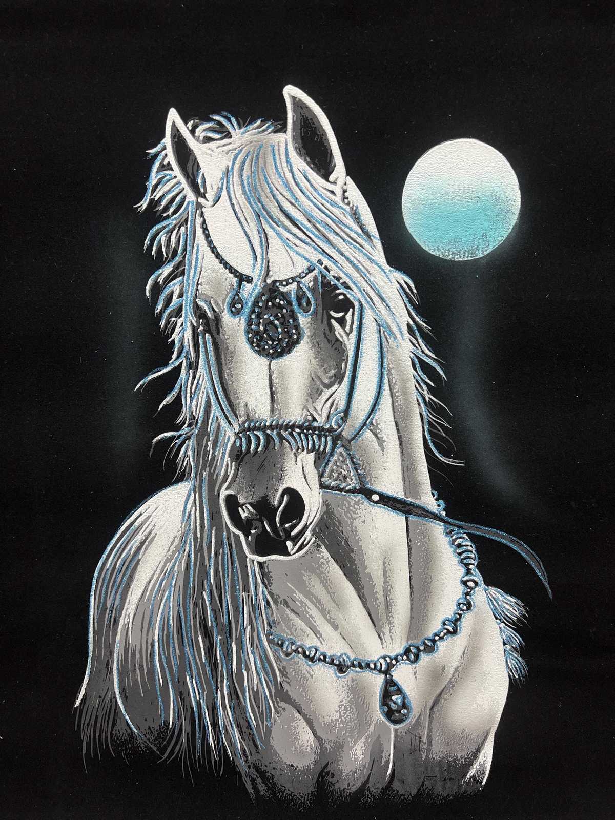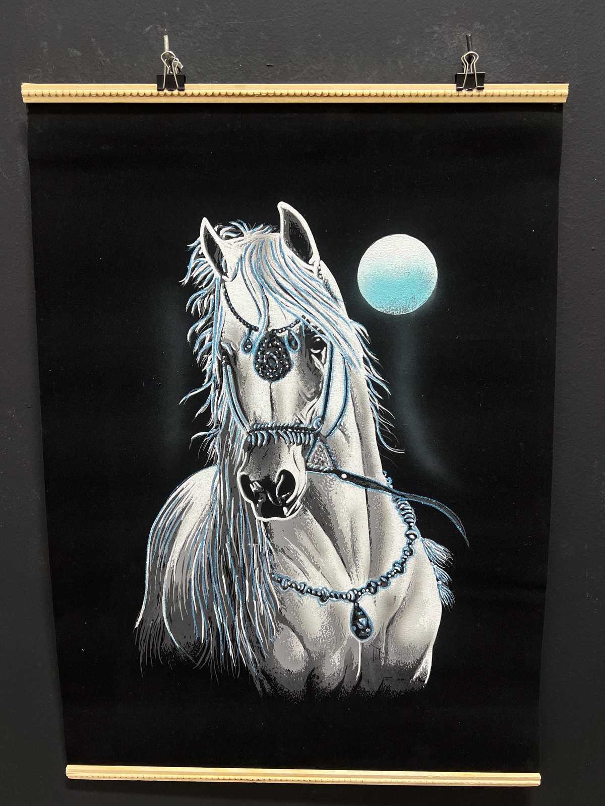 Hand-Painted Black Velvet Artwork, Beautiful horse under moon velvet picture, g