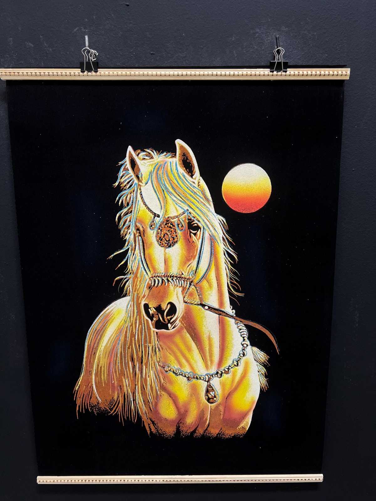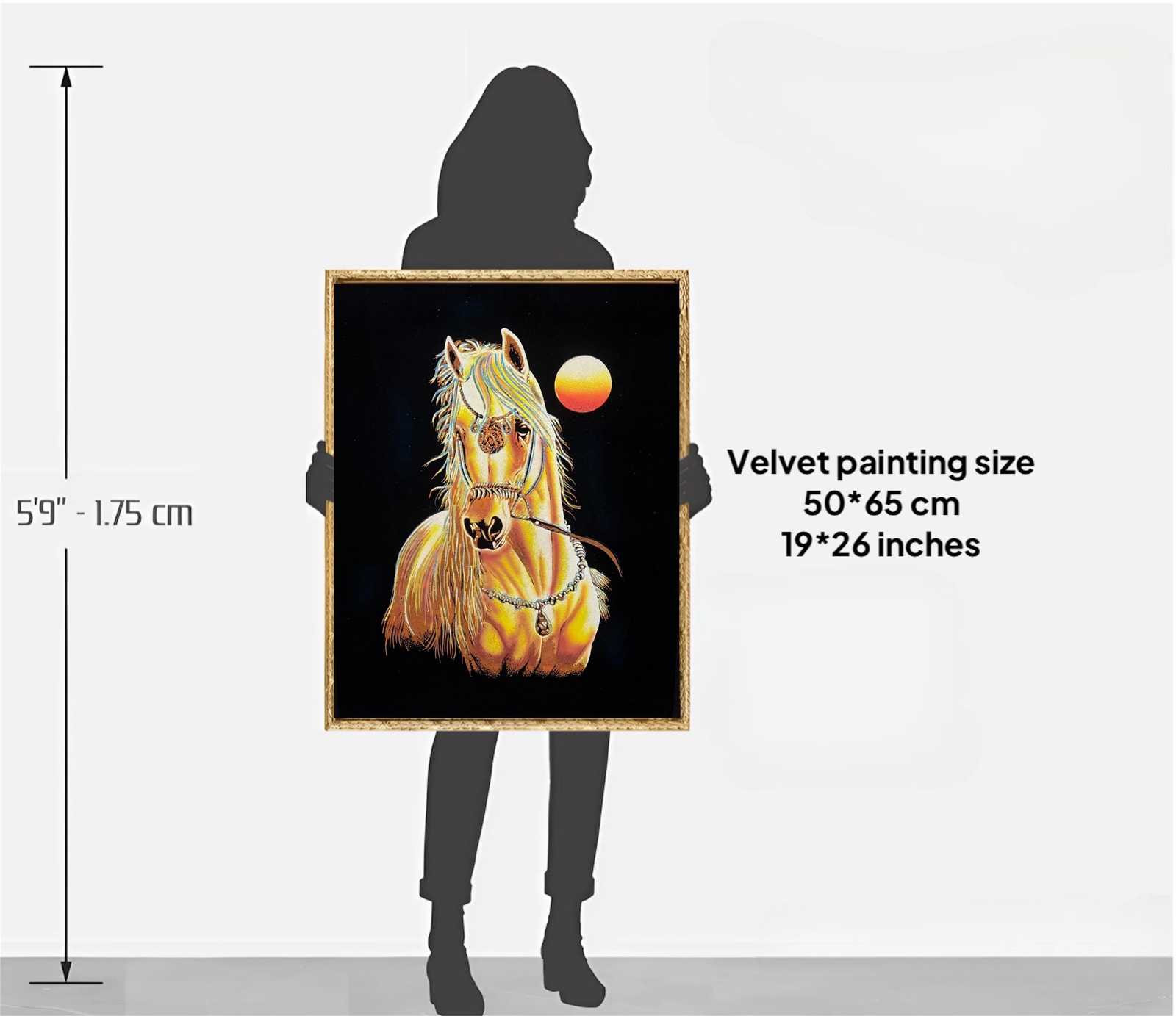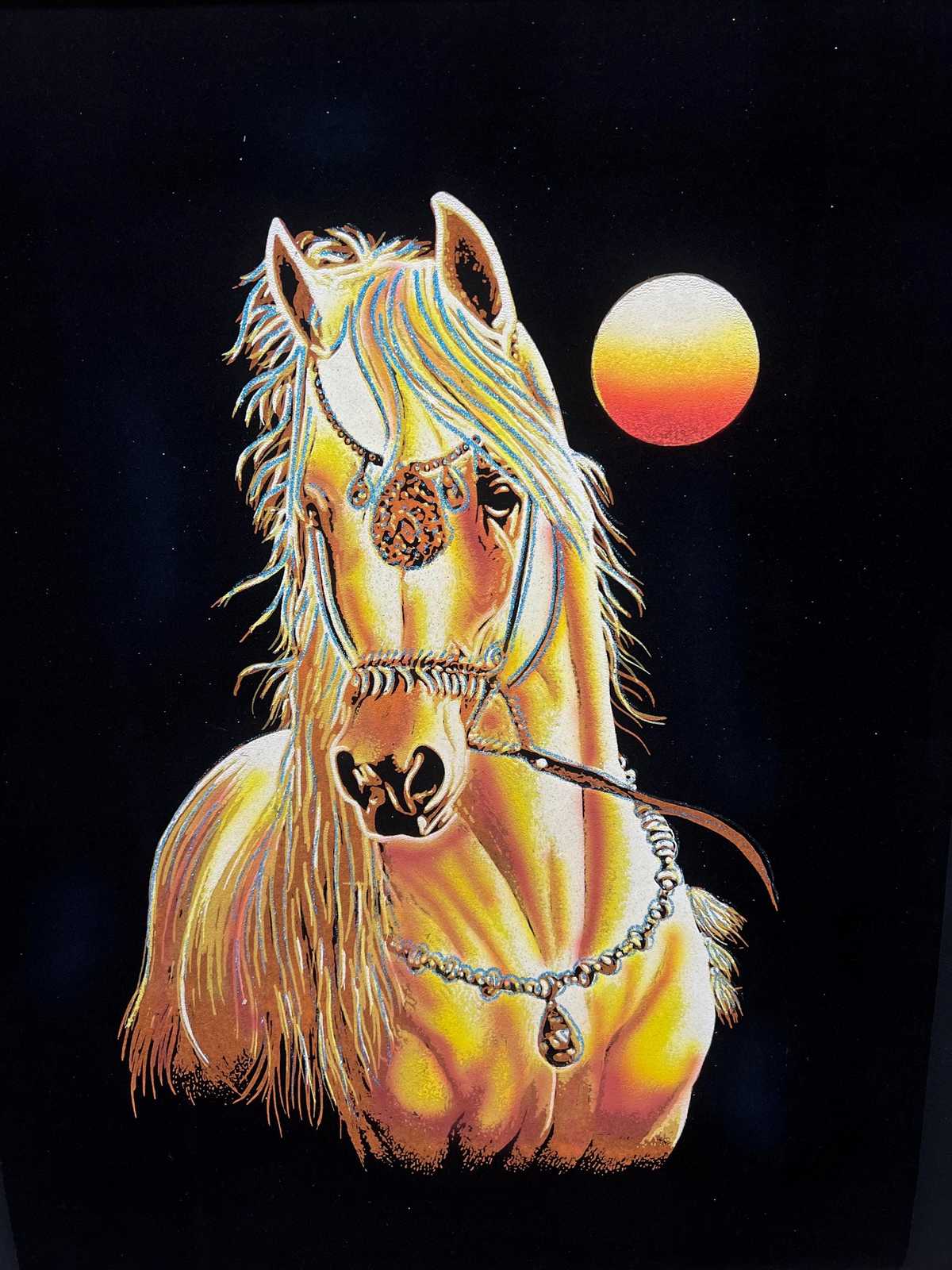 Hand-Painted Black Velvet Artwork, Beautiful horse under moon velvet picture, g