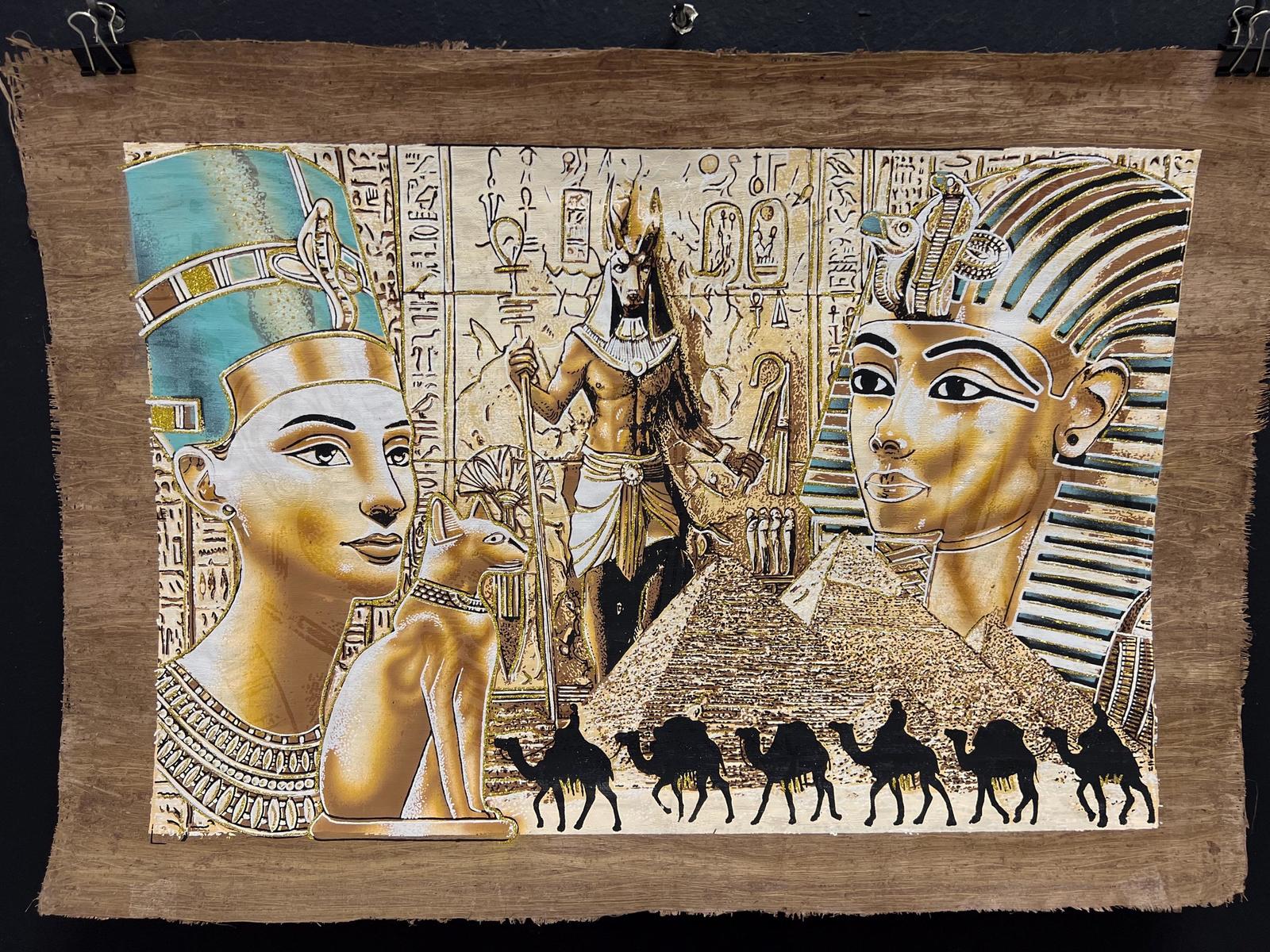 #brownpapyrus #antiquedpapyrus #ancientegyptian #papyruspainting #vintagepapyrus #glowinthedark #madeinegypt #handmadepapyrus #rarehandpainting #authenticleaves #uniqueart #limitededition #nefertitiandtut
