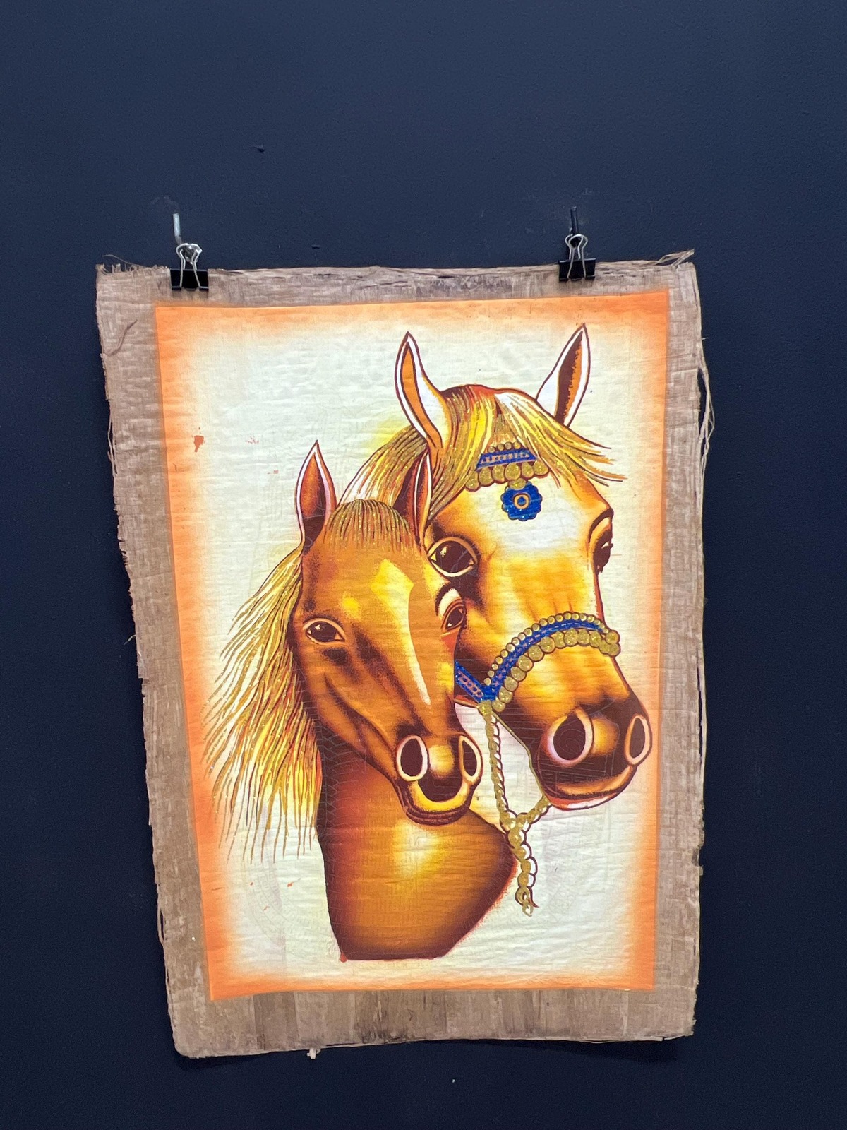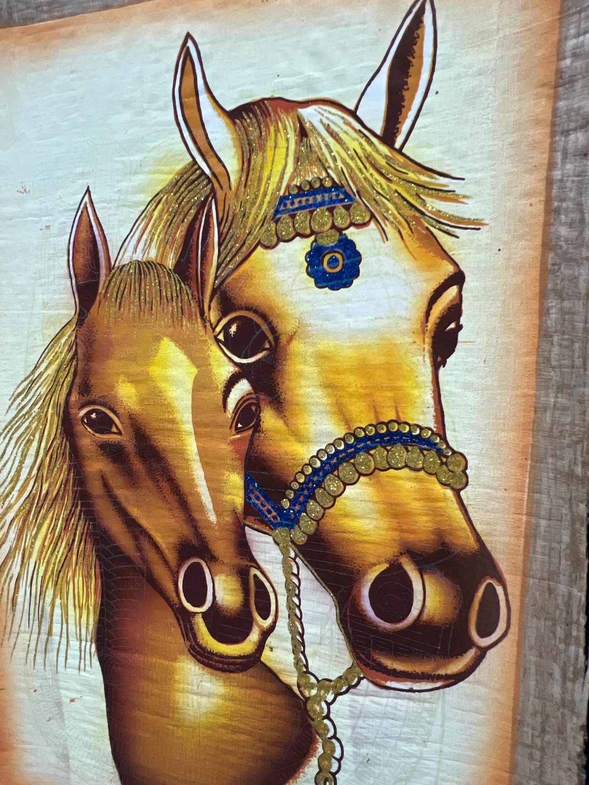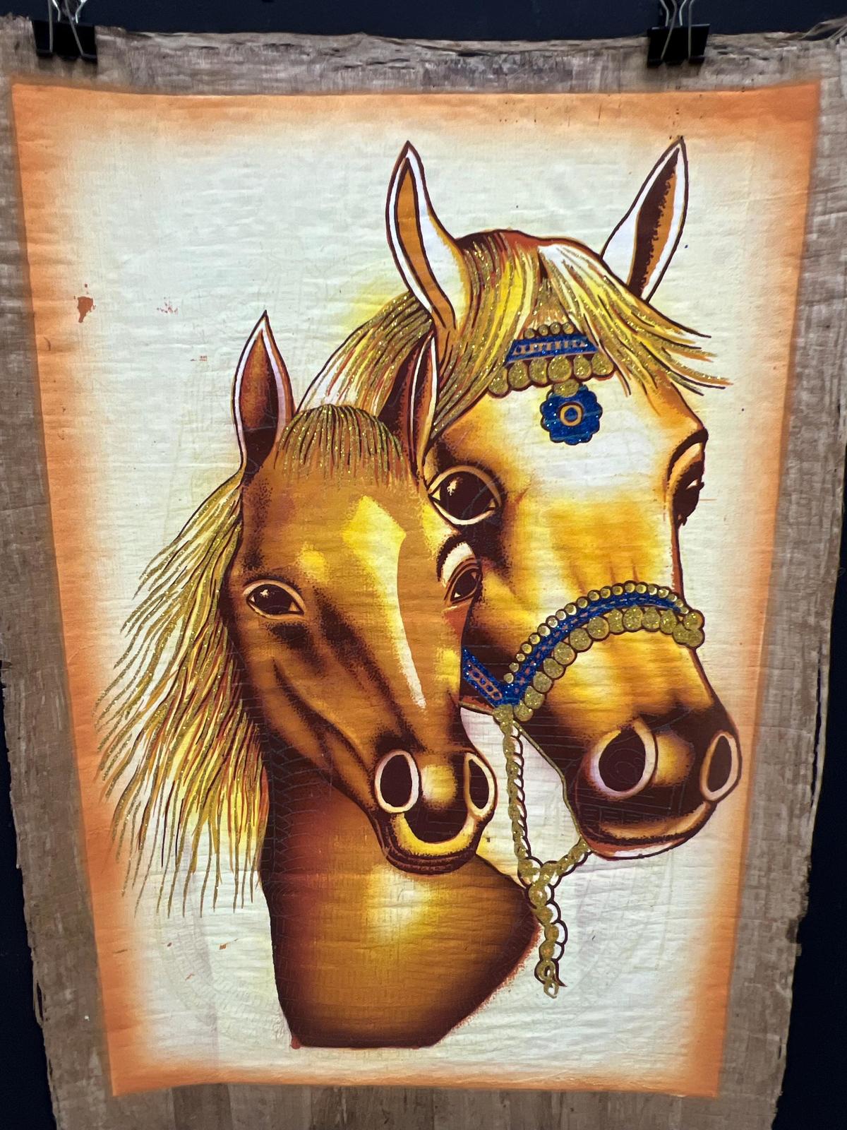 Handmade Egyptian Papyrus Art – Featuring Majestic Horses, glowing in the dark h