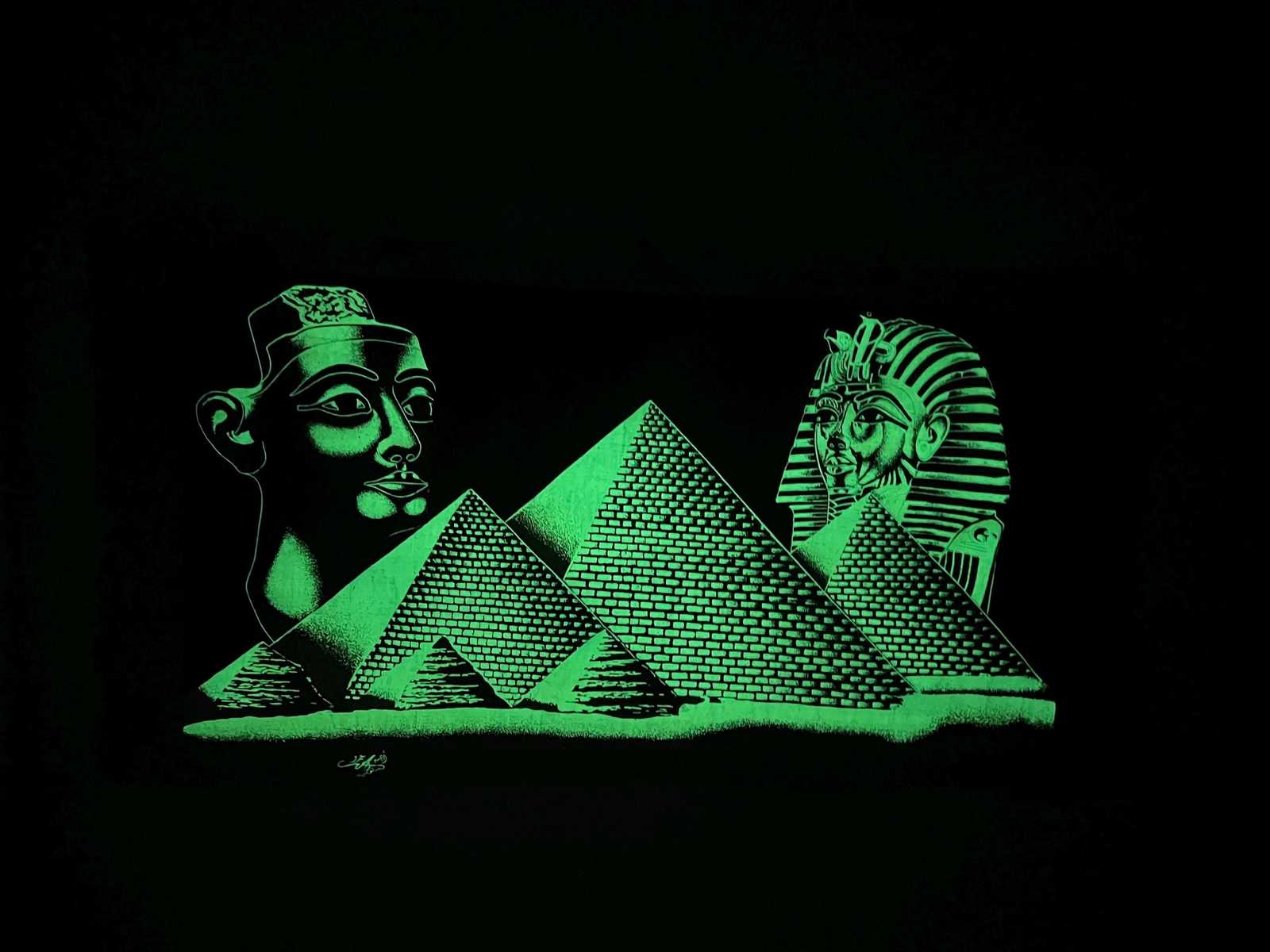 Egyptian Papyrus,Nefertiti and Tutankhamun on Antiqued Papyrus, Glow in the Dark